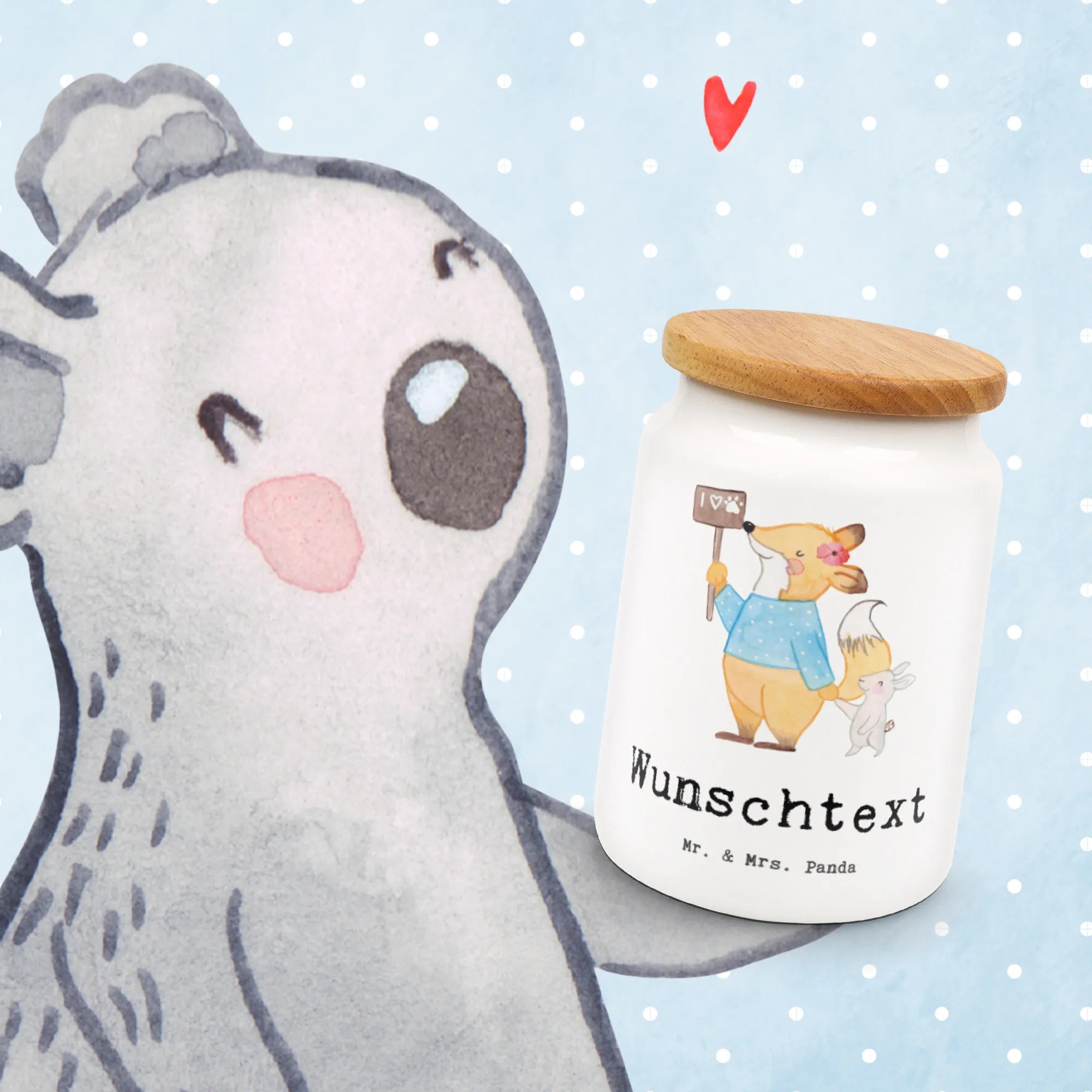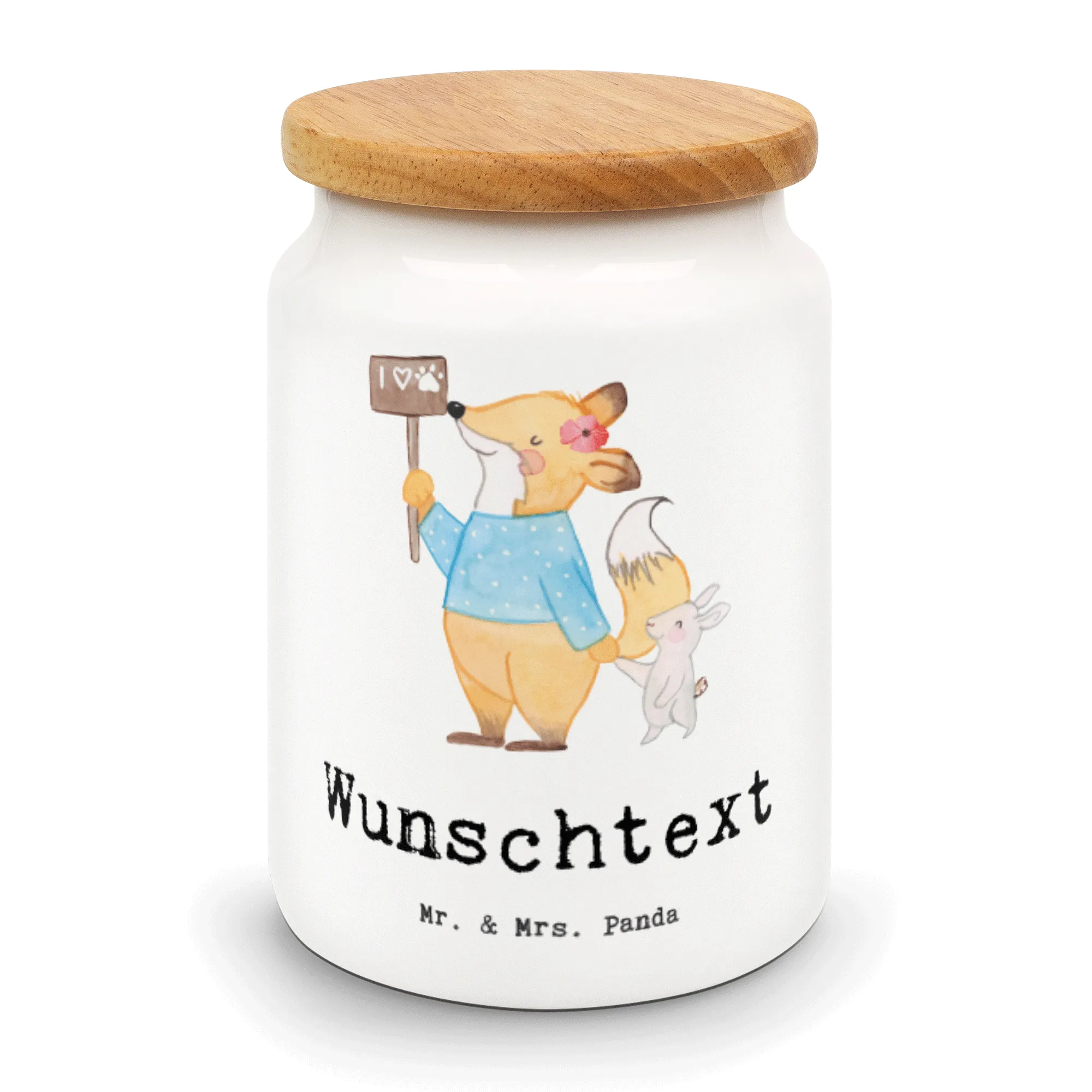 Die personalisierte Vorratsdose "Tierschützerin mit Herz" von Mr. & Mrs. Panda ist das perfekte Geschenk für alle Tierliebhaber und Tierschützer! Diese liebevolle Keramikdose bringt nicht nur Funktionalität, sondern auch eine Prise Persönlichkeit in jede Küche oder in jedes Wohnzimmer. Mit einem süßen Motiv – einem Fuchs, der einen kleinen Hasen beschützt und dabei das Schild "I love animals" hält – strahlt diese Dose eine herzerwärmende Botschaft aus. Hier findest du nicht nur Platz für Kekse, Snacks oder Leckereien, sondern zeigst auch dein Engagement für den Tierschutz.