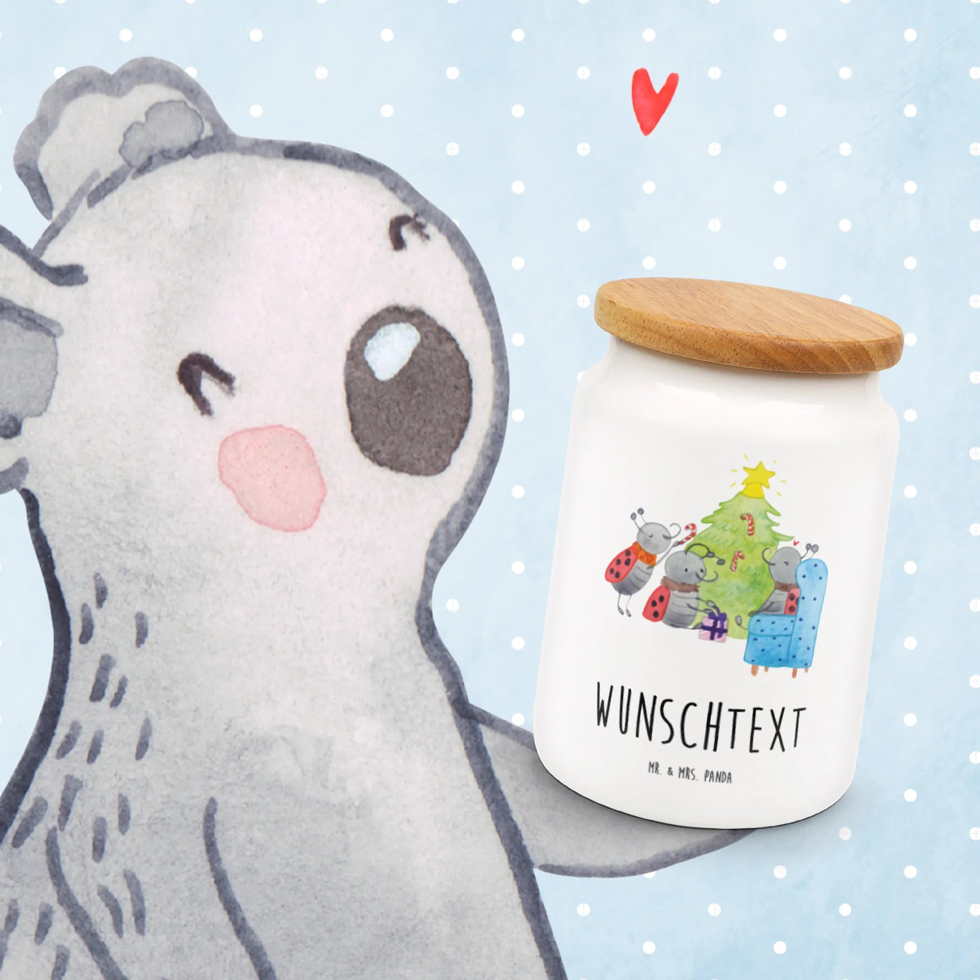 Die personalisierte Vorratsdose Weihnachten Smörle von Mr. & Mrs. Panda ist das perfekte Geschenk für die besinnliche Winterzeit! Mit ihrem liebevoll gestalteten Motiv bringt sie weihnachtlichen Zauber in jede Küche. Darauf siehst du drei fröhliche Marienkäfer, die um einen festlich geschmückten Weihnachtsbaum herumhängen. Diese zauberhafte Szene weckt Kindheitserinnerungen und den Duft von Tannennadeln und Pfefferminz in der Luft.