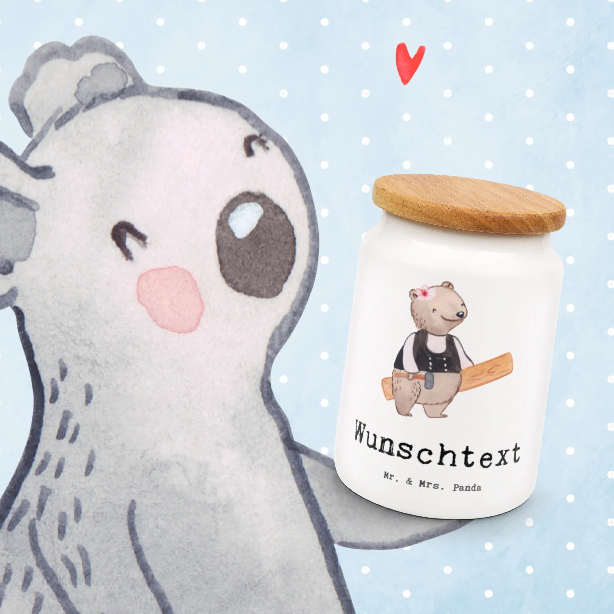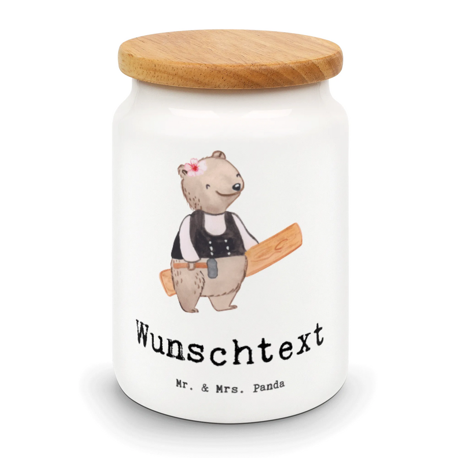 Die personalisierte Vorratsdose "Zimmerfrau mit Herz" von Mr. & Mrs. Panda ist das perfekte Geschenk für alle, die in der Zimmermannsbranche arbeiten. Sie ist nicht nur praktisch, sondern auch liebevoll gestaltet und macht jedes Zuhause ein Stück schöner.