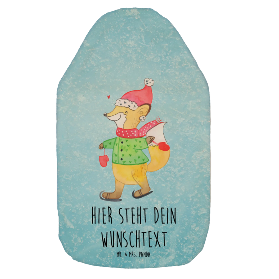 Personalisierte Wärmflasche Fuchs Schlittschuhe - Eisblau