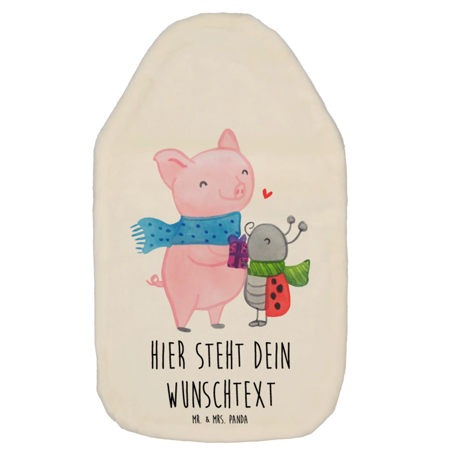 Mach dich bereit für die kuschelige Winterzeit mit unserer personalisierten Wärmflasche Glühschwein Smörle aus der Winter Kollektion von Mr. & Mrs. Panda! Diese wunderschön gestaltete Wärmflasche ist nicht nur stylisch, sondern auch super praktisch für die kälteren Tage. Mit einem herzlichen, handgezeichneten Motiv unseres Glühschweins Smörle, das seinen blauen gepunkteten Schal stolz präsentiert, zaubert sie garantiert ein Lächeln auf dein Gesicht und bringt Wärme in dein Herz. Das rosa Schweinchen und der süße Marienkäfer teilen eine besondere Freundschaft, die durch ein kleines rotes Herz symbolisiert wird, und versprühen damit einen Hauch von magischer Winterromantik.