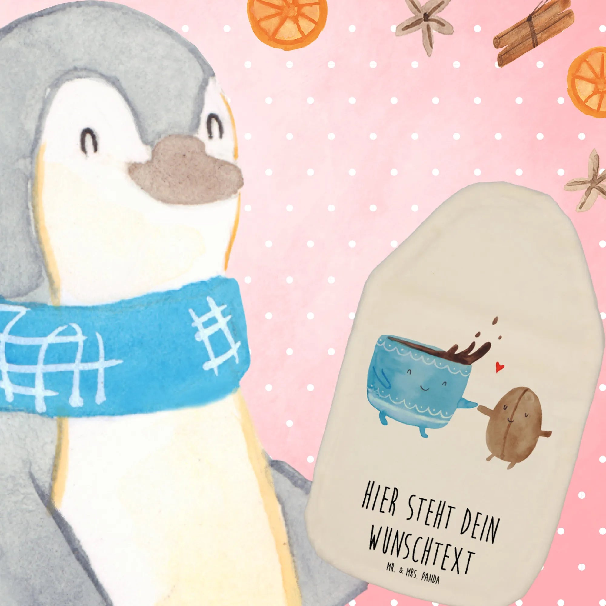 Entdecke die perfekte persönliche Umarmung: unsere personalisierte Wärmflasche mit dem fröhlichen Motiv der Kaffeebohne aus der liebevollen Small World Kollektion von Mr. & Mrs. Panda.