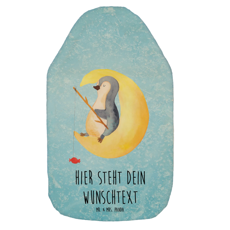 Personalisierte Wärmflasche Pinguin Mond - Eisblau