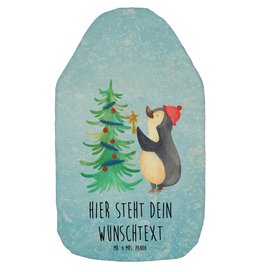 Personalisierte Wärmflasche Pinguin Weihnachtsbaum - Eisblau