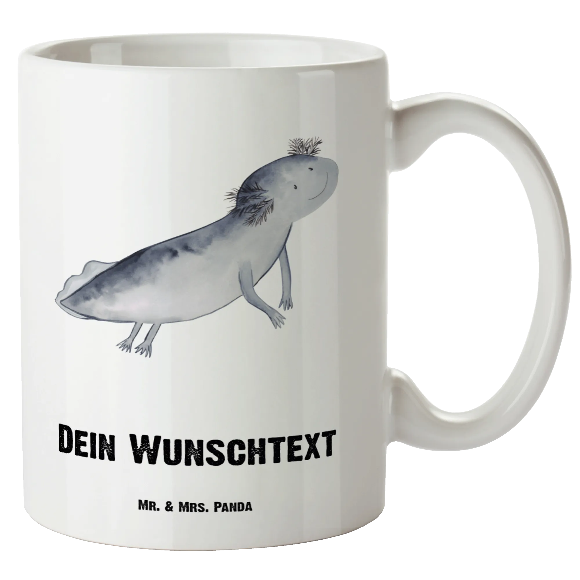 Du suchst das perfekte Geschenk für Freunde oder Familie, die das Besondere lieben? Unsere personalisierte XL Tasse mit dem niedlichen Motiv "Axolotl schwimmt" aus der Axolotl-Kollektion von Mr. & Mrs. Panda ist genau das Richtige! Diese große Kaffeetasse ist nicht nur spülmaschinenfest und aus hochwertigem Steingut gefertigt, sondern bietet auch genug Platz für bis zu 500 ml Deines Lieblingsgetränks. Ob Kaffee, Tee oder Kakao – mit dieser Tasse wird jeder Schluck zum Genuss!