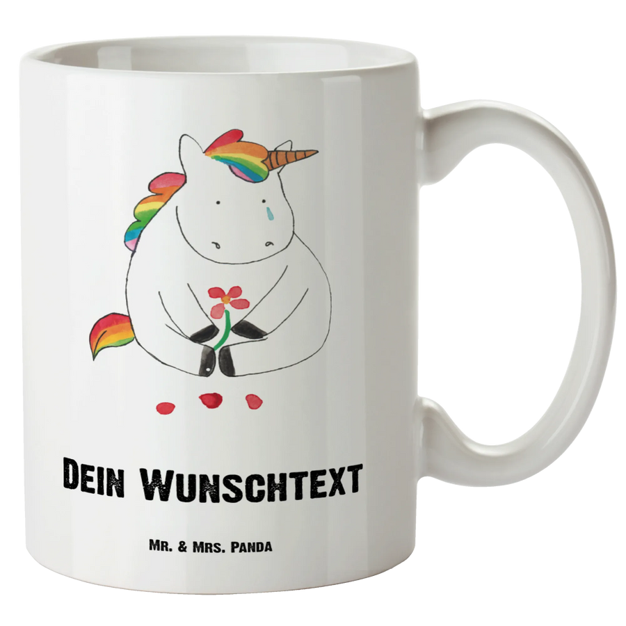 Entdecke die personalisierte XL Tasse "Einhorn Traurig" von Mr. & Mrs. Panda – das perfekte Geschenk für all diejenigen, die eine Portion Glitzer und Freundschaft brauchen! Diese bezaubernde Tasse ist nicht nur groß, sondern auch einzigartig und wird mit einem Namen deiner Wahl verziert, sodass du sie ganz individuell gestalten kannst.