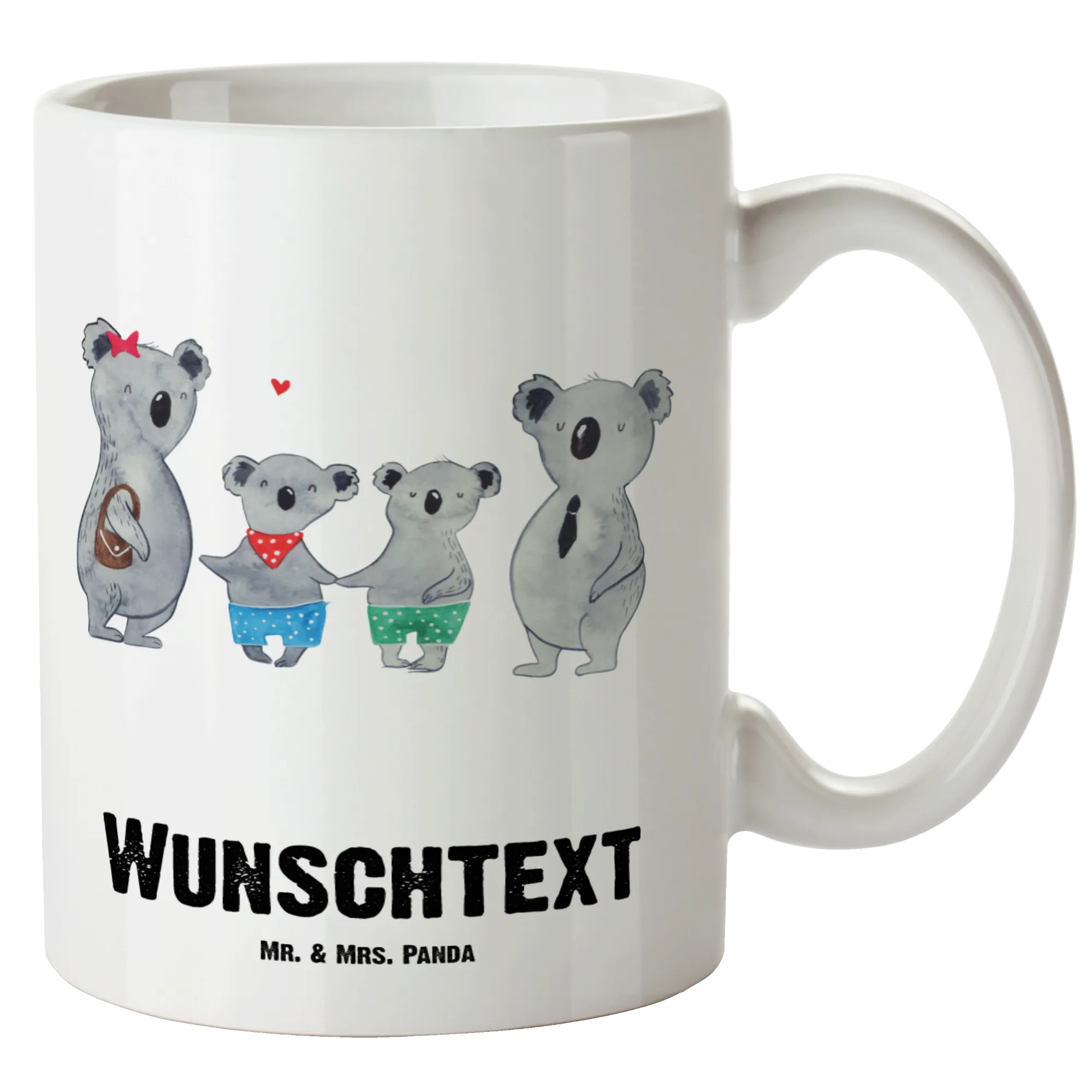 Die personalisierte XL Tasse "Koala Familie zwei" von Mr. & Mrs. Panda ist das perfekte Geschenk für jeden Familienmenschen! In einer Welt, in der Familie an erster Stelle steht, bringt dieses schöne Stück Wärme und Freude in den Alltag. Das liebevoll gestaltete Motiv zeigt eine liebende Koalafamilie und strahlt eine herzliche Atmosphäre aus, die jeder Mensch zu schätzen weiß. Ob als Geschenk zum Muttertag, Vatertag oder einfach nur als kleine Aufmerksamkeit für deine Lieblingsmenschen, diese große Tasse hat einfach immer einen besonderen Platz.