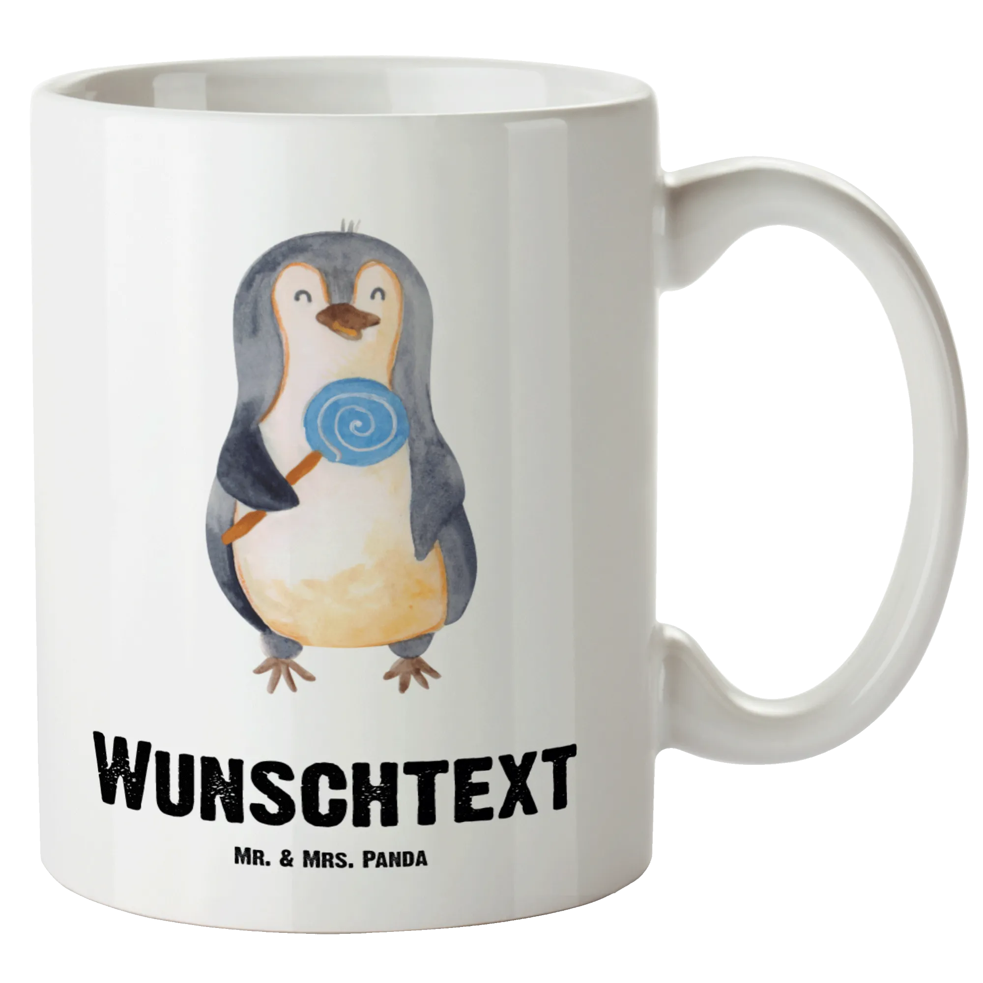 Die personalisierte XL Tasse Pinguin Lolli von Mr. & Mrs. Panda ist das perfekte Geschenk für alle, die das Leben mit einem Hauch von Humor genießen möchten. Mit einem charmanten, handgezeichneten Pinguin, der stolz seinen bunten Lolli präsentiert, bringt diese Tasse nicht nur Freude, sondern auch Persönlichkeit in jeden Kaffeegenuss.