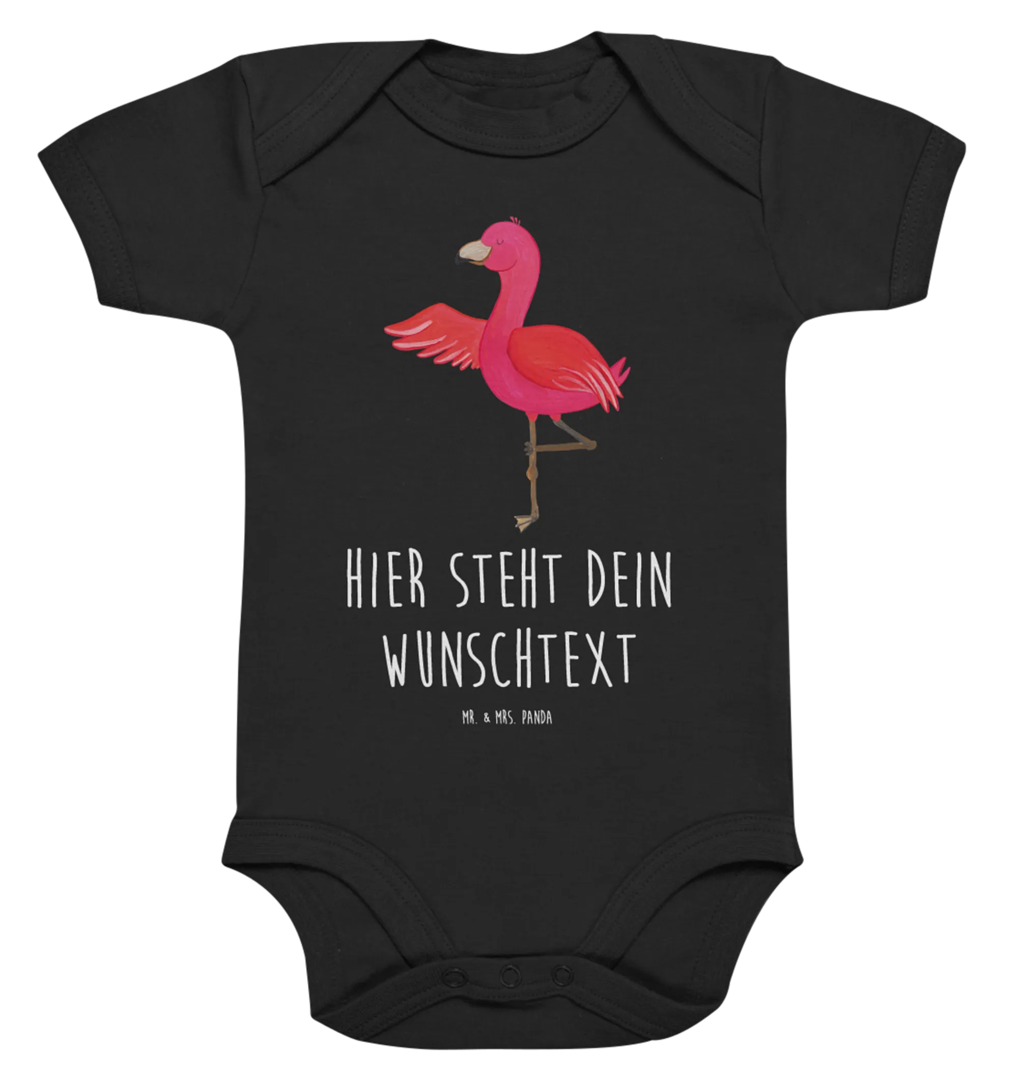 Du bist auf der Suche nach dem perfekten Geschenk für ein kleines Wunder? Dann ist der personalisierte Baby Body mit dem zauberhaften Flamingo Yoga Motiv aus der Flamingo Kollektion von Mr. & Mrs. Panda genau das Richtige für dich! Dieser niedliche Babystrampler bringt nicht nur Freude in den Alltag deines kleinen Schatzes, sondern ist gleichzeitig auch ein schöner Blickfang. Flamingos, die bunten Paradiesvögel, stehen für Freiheit, Entspannung und Lebensfreude. Mit dem Spruch "Ich rege mich nicht auf. Ich mache Yoga." fördert dieser Body eine positive Einstellung schon von klein auf.