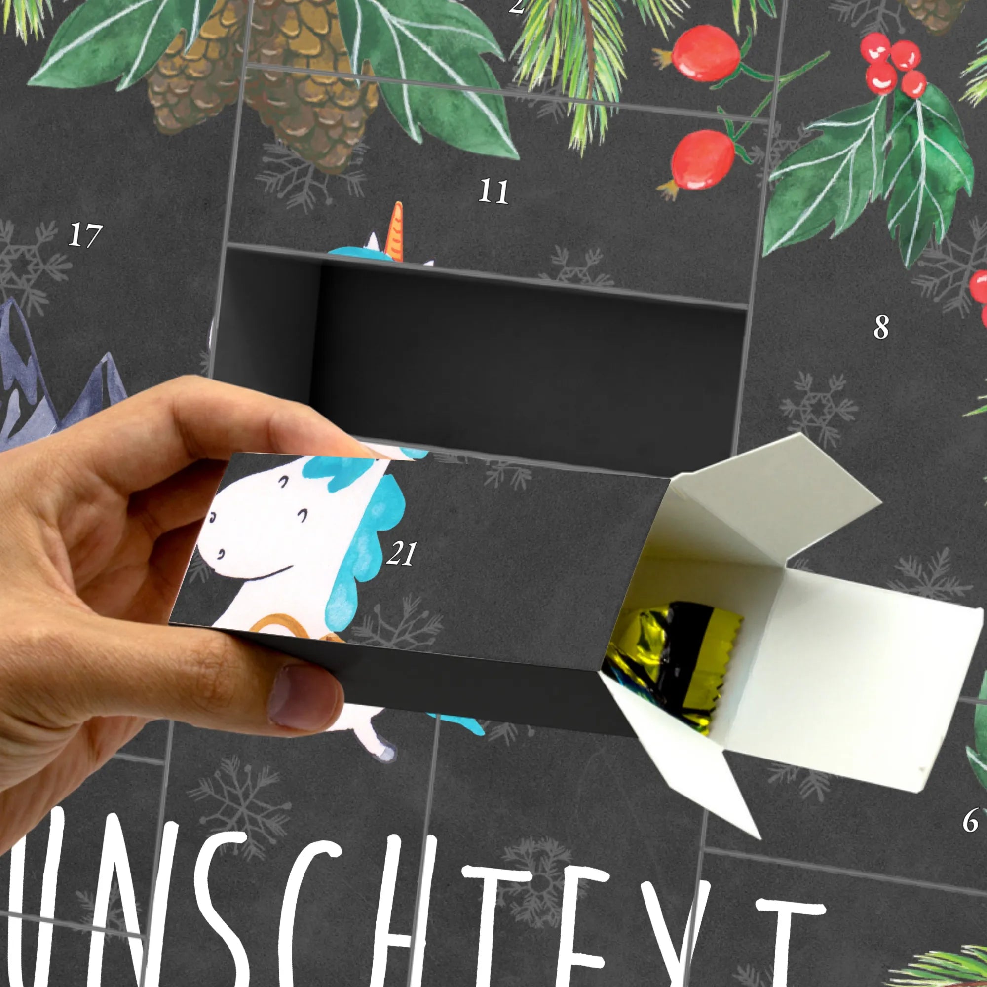 Der Kalender wird auf hochwertigem 300 Gramm Karton gedruckt und ist stabil genug, um viele Abenteuer zu erleben. Mit der Aufstellvorrichtung lässt er sich überall wunderbar präsentieren. Für alle, die die magische Welt der Einhörner lieben, ist dieser Kalender nicht nur ein adventlicher Begleiter, sondern auch ein aufregendes Deko-Element.