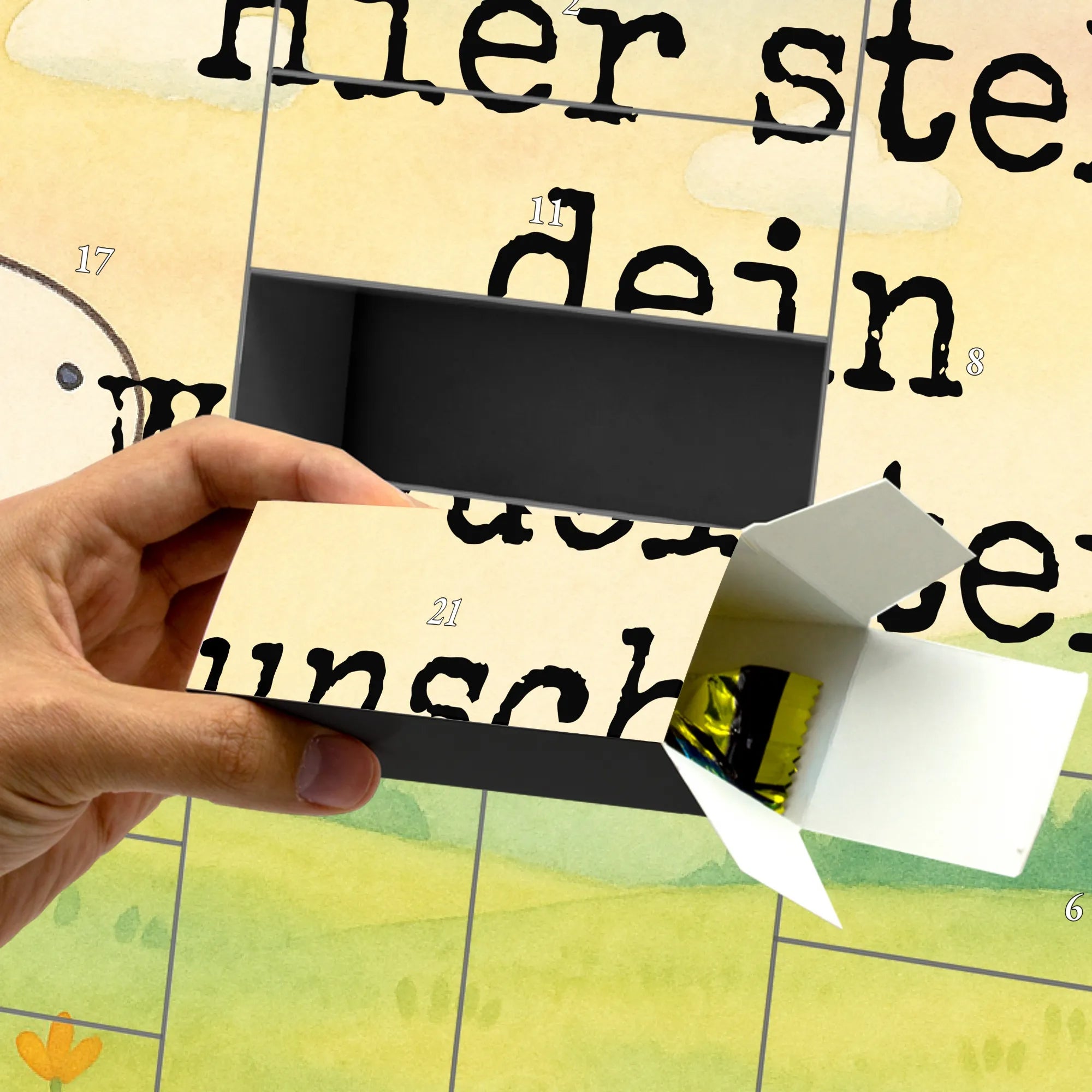 Befüllbarer Adventskalender personalisiert von Mr. & Mrs. Panda – mach die Adventszeit besonders! Der Kalender ist liebevoll illustriert und bedruckt mit unseren typischen, herzlichen Sprüchen und Motiven. Du kannst ihn mit deinem Wunschtext oder Namen personalisieren, sodass er ein ganz persönliches Geschenk für Kinder, Partner oder Freunde wird. Auf der Vorderseite strahlt dich eine zarte Zeichnung von Mrs. Panda an, die dem Kalender seinen einzigartigen Charme verleiht. Der Adventskalender besteht aus stabilem Adventskalender Karton, bietet 24 Schachteln zum Selbstbefüllen und überzeugt durch brillante Druckqualität mit seidenmatter Oberfläche. Praktisch: inklusive Aufstellvorrichtung, somit steht er sicher auf Regalen oder Tischen. Besonderer Hinweis: wird ohne Füllung geliefert, sodass du die Überraschungen selbst aussuchen kannst. Maße: Breite: 619 mm, Höhe: 405 mm, Tiefe: 50 mm. Ein liebevolles Geschenk, das jeden Dezembertag zu etwas Besonderem macht.
