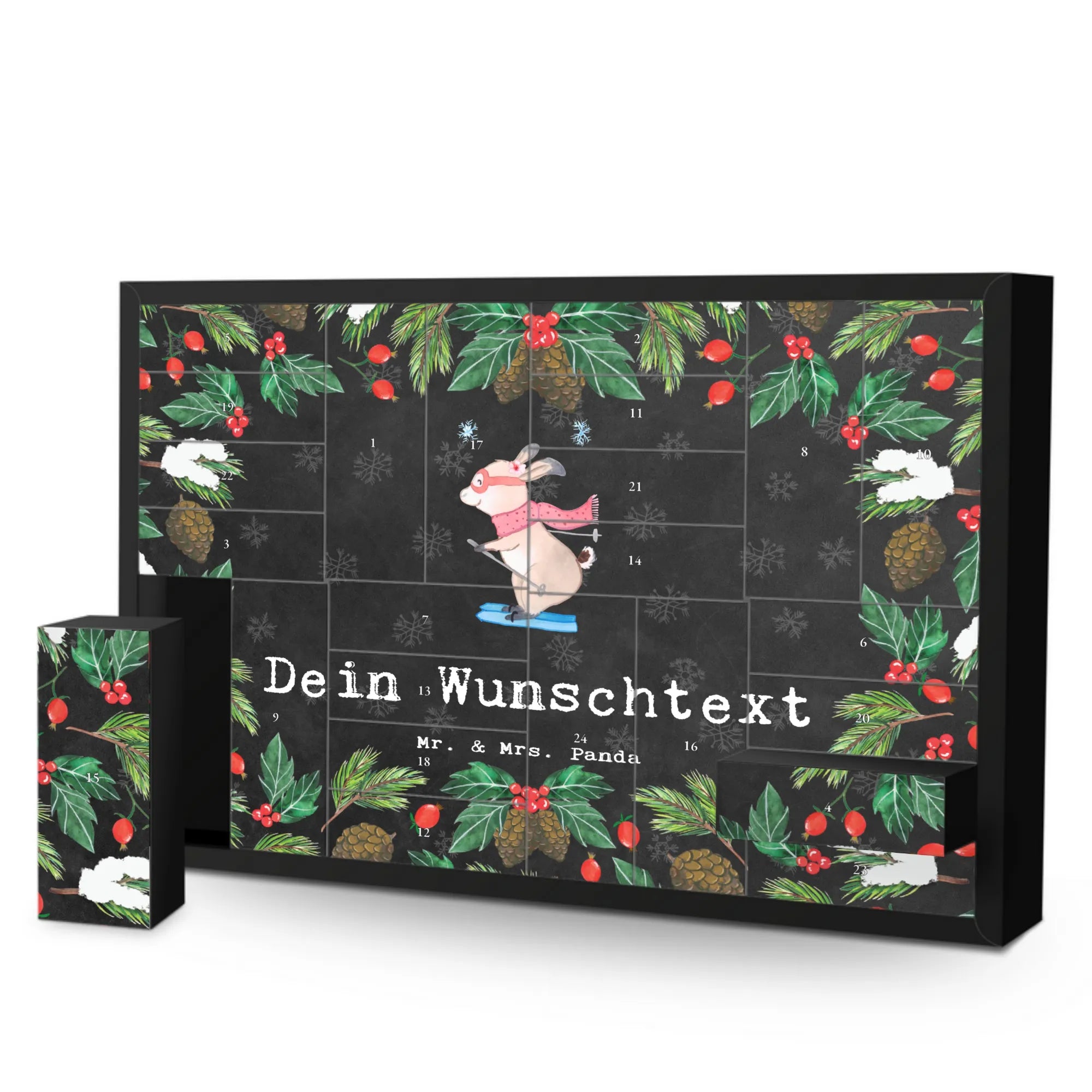 Personalisierter Befüllbarer Adventskalender Hase Skifahren - Kreidetafel