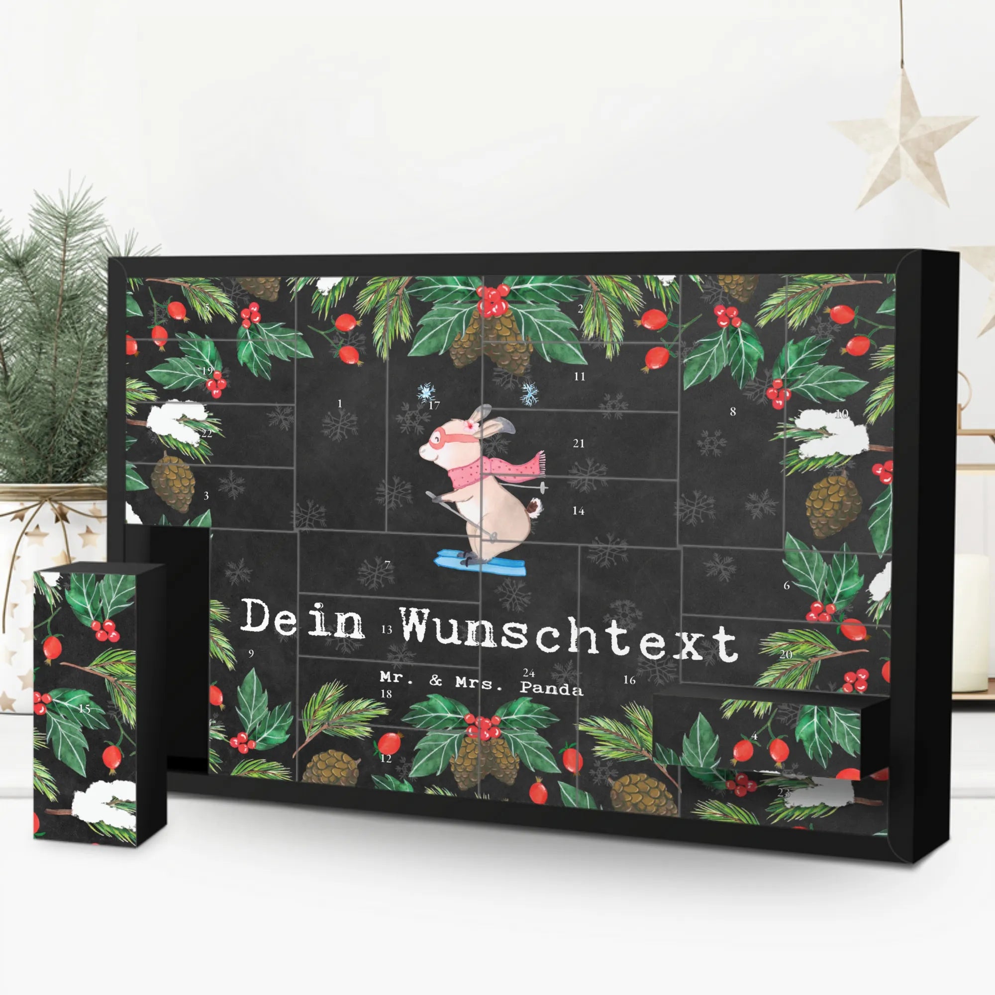 🐼 PERSONALISIERTER ADVENTSKALENDER: 24 Fächer, Mr. & Mrs. Panda Druck, inklusive Aufsteller.