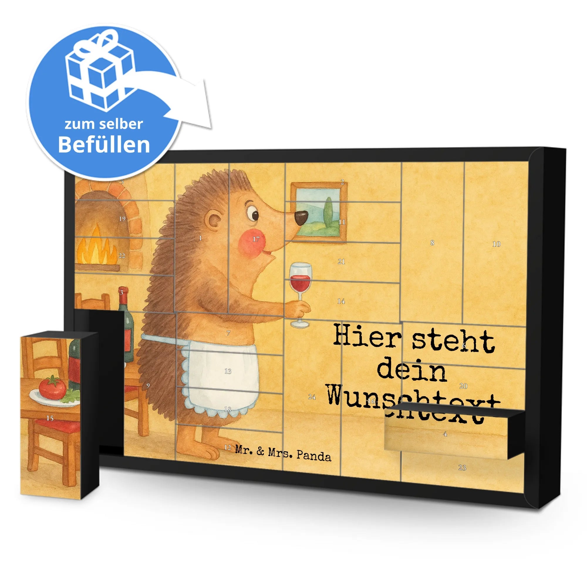 Personalisierter Befüllbarer Adventskalender Igel Wein Design