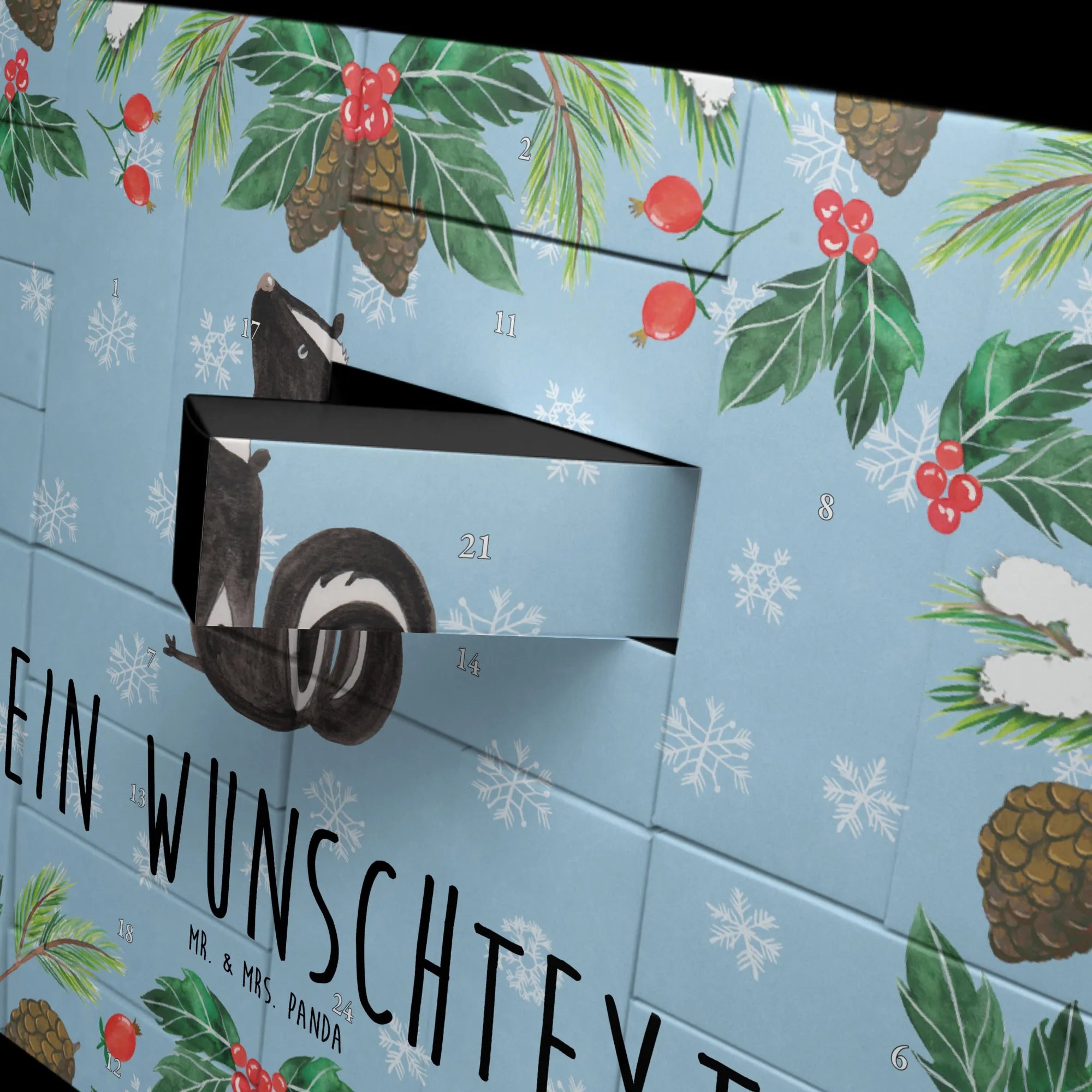 Egal ob man selber dekoriert oder ihn verschenkt, der Adventskalender mit Stinktier-Motiv wird für Freude und Begeisterung sorgen. Mache diese Adventszeit unvergesslich mit dem liebevoll gestalteten Adventskalender von Mr. & Mrs. Panda!