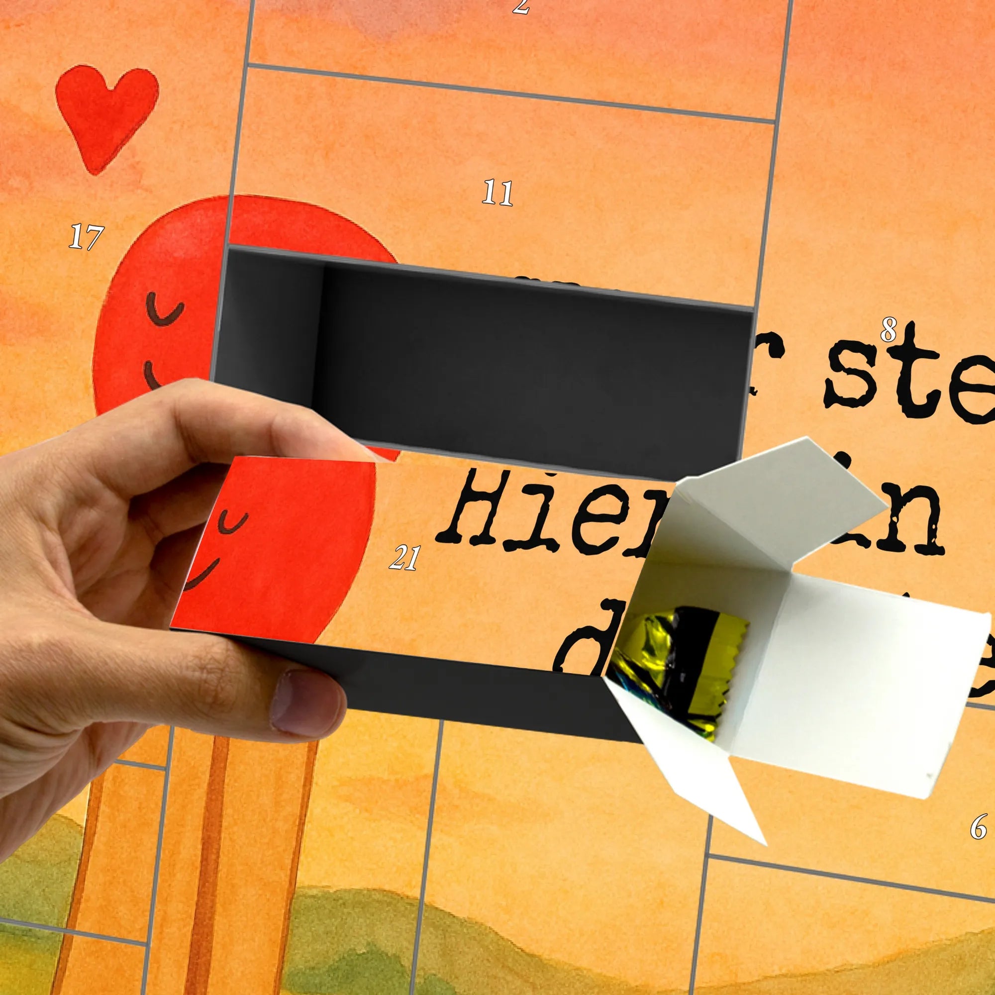 Personalisierter Befüllbarer Adventskalender von Mr. & Mrs. Panda – dein perfekter Begleiter durch die Vorweihnachtszeit! Dieser liebevoll gestaltete Adventskalender ist bedruckt mit wunderschönen Sprüchen und Motiven von Mr. & Mrs. Panda und lässt sich ganz nach deinem Geschmack personalisieren: Trage deinen Wunschnamen oder Wunschtext ein, und wir drucken ihn auf die Vorderseite. Auf der Frontseite findest du eine zauberhafte Zeichnung von Mrs. Panda, die dem Kalender einen warmen, persönlichen Touch verleiht. Der Kalender verfügt über 24 praktische Schachteln zum Selbstbefüllen, ideal für kleine Überraschungen, Süßigkeiten oder liebe Botschaften. Material: stabiler Adventskalender Karton mit brillanter Druckqualität und seidenmatter Oberfläche für eine hochwertige Optik. Besonderheit: inklusive Aufstellvorrichtung, sodass du den Kalender überall dekorativ platzieren kannst. Besonderer Hinweis: wird ohne Füllung geliefert – so kannst du ihn individuell bestücken. Maße: Breite: 619 mm, Höhe: 405 mm, Tiefe: 50 mm. Ein tolles Geschenk für Familie, Freunde oder als persönliche Deko für dein Zuhause. Bestelle jetzt deinen personalisierten Adventskalender und erfreue deine Liebsten jeden Tag im Dezember mit kleinen Überraschungen!