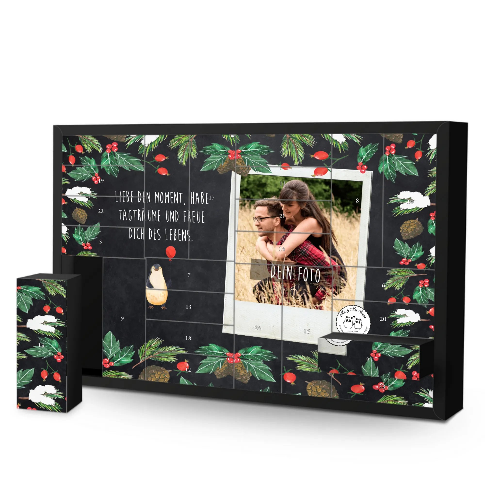 🐼 FOTO-ADVENTSKALENDER: Dein Foto auf der Front, kombiniert mit Mr. & Mrs. Panda Sprüchen.