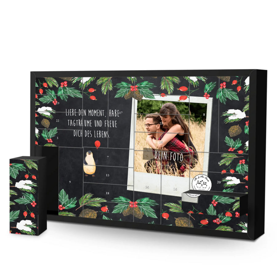Bist du auf der Suche nach dem perfekten Adventskalender, der Freude und persönliche Erinnerungen in die Vorweihnachtszeit bringt? Unser personalisierbarer, befüllbarer Foto Adventskalender im Pinguin-Luftballon Design von Mr. & Mrs. Panda ist genau das, was du suchst!