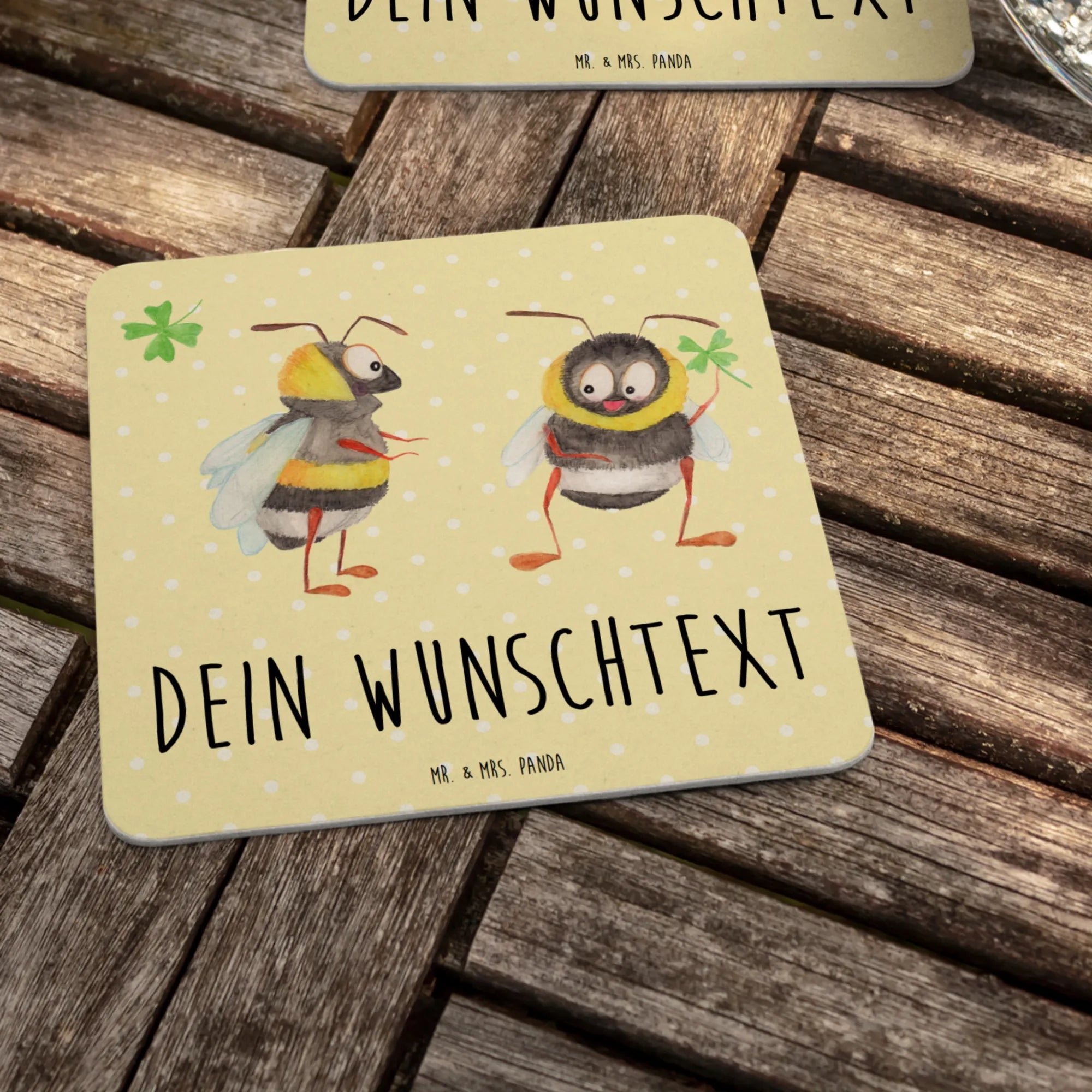 Der personalisierte Bierdeckel mit dem süßen Motiv der Hummeln und dem Kleeblatt von Mr. & Mrs. Panda ist das perfekte Geschenk für unvergessliche Anlässe wie Hochzeiten, Geburtstagsfeiern oder Junggesellenabschiede! Dieser stilvolle, quadratische Bierdeckel bringt nicht nur gute Laune, sondern schützt gleichzeitig deinen Tisch vor unschönen Kratzern und Abdrücken.
