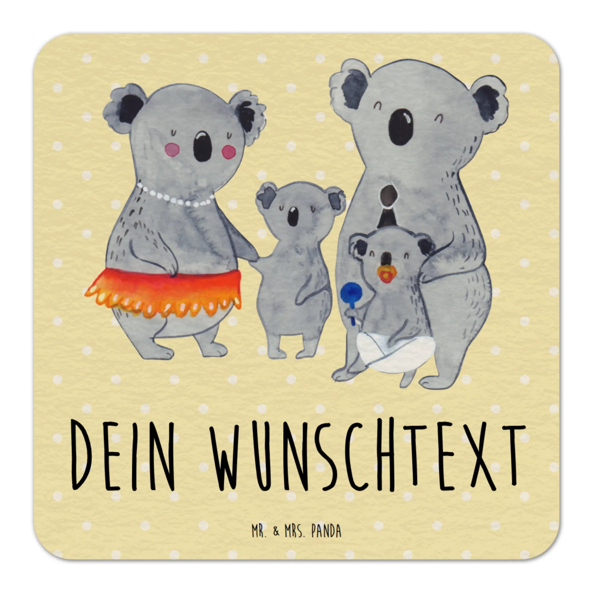 Die Familienkollektion von Mr. & Mrs. Panda ist eine wundervolle Zusammenstellung von liebevollen Motiven und Sprüchen, die zeigen, wie wichtig Familie ist. Die handgezeichneten Aquarelle machen jedes Produkt zu etwas Einzigartigem und Persönlichem. Du wirst begeistert sein, wie gut sich der Bierdeckel mit deinem individuellen Text ergänzen lässt und so zu einem echten Highlight auf deiner Feier wird! Lass die Koalas für sich sprechen und erlebe, wie viel Spaß es macht, diesen personalisierten Bierdeckel bei dir zu haben. Verleihe deinen Feiern einen Hauch von Liebe und Individualität!