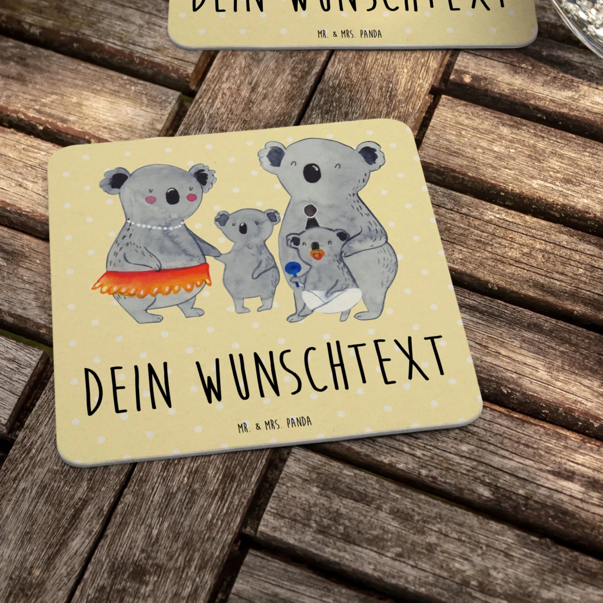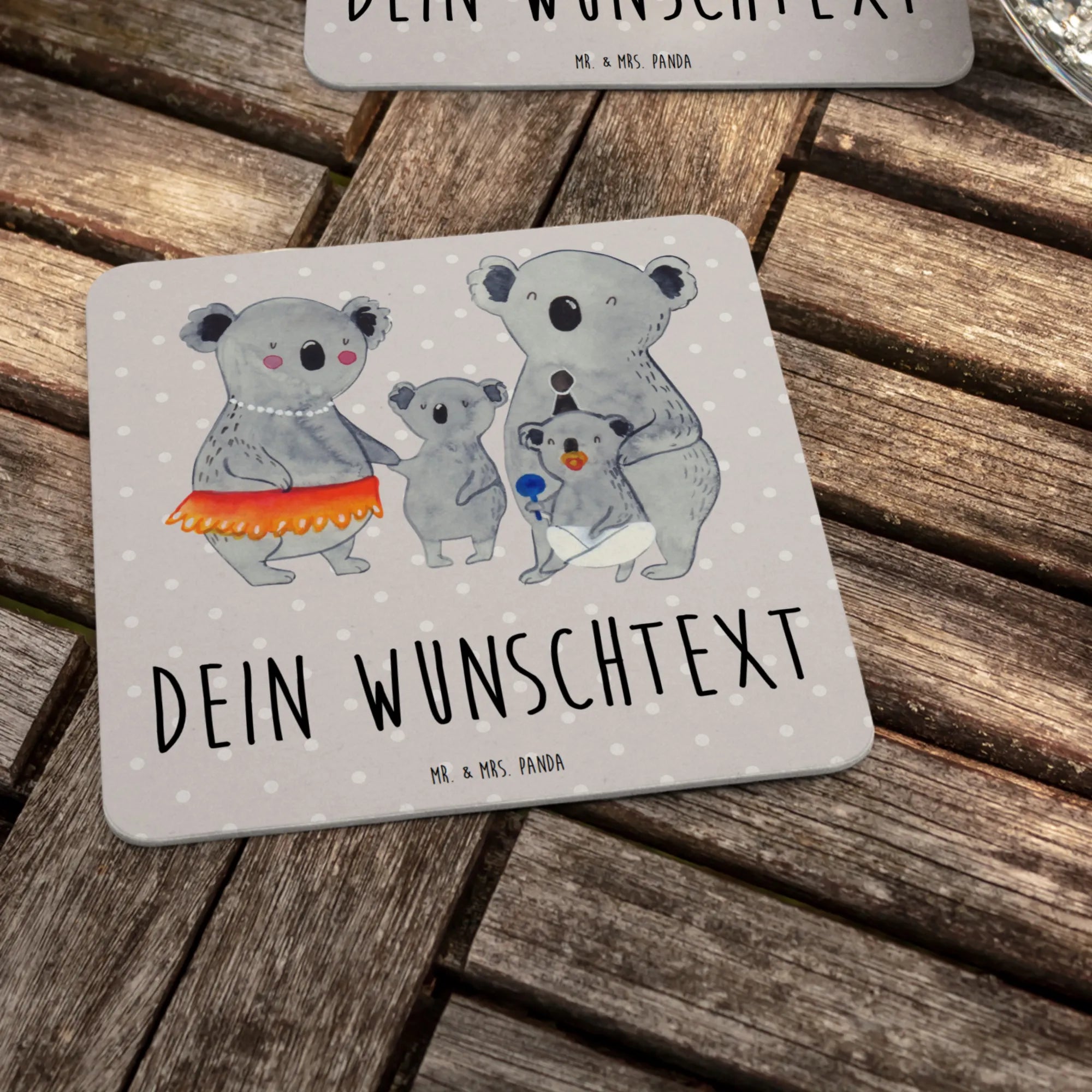Suchst du das perfekte Geschenk für deine Familie oder Freunde? Dann ist der personalisierte Bierdeckel mit dem süßen Koala Familienmotiv von Mr. & Mrs. Panda genau das Richtige für dich!