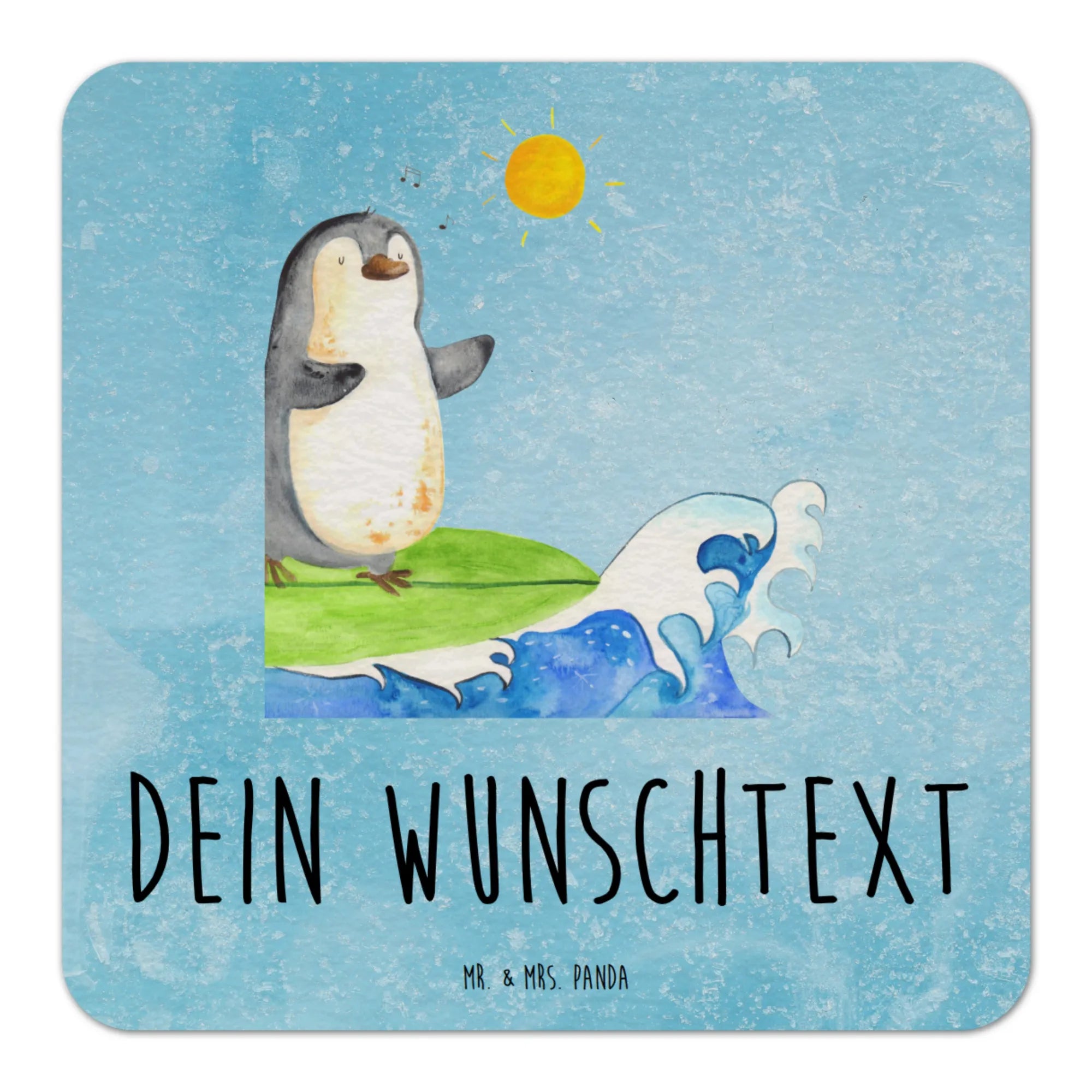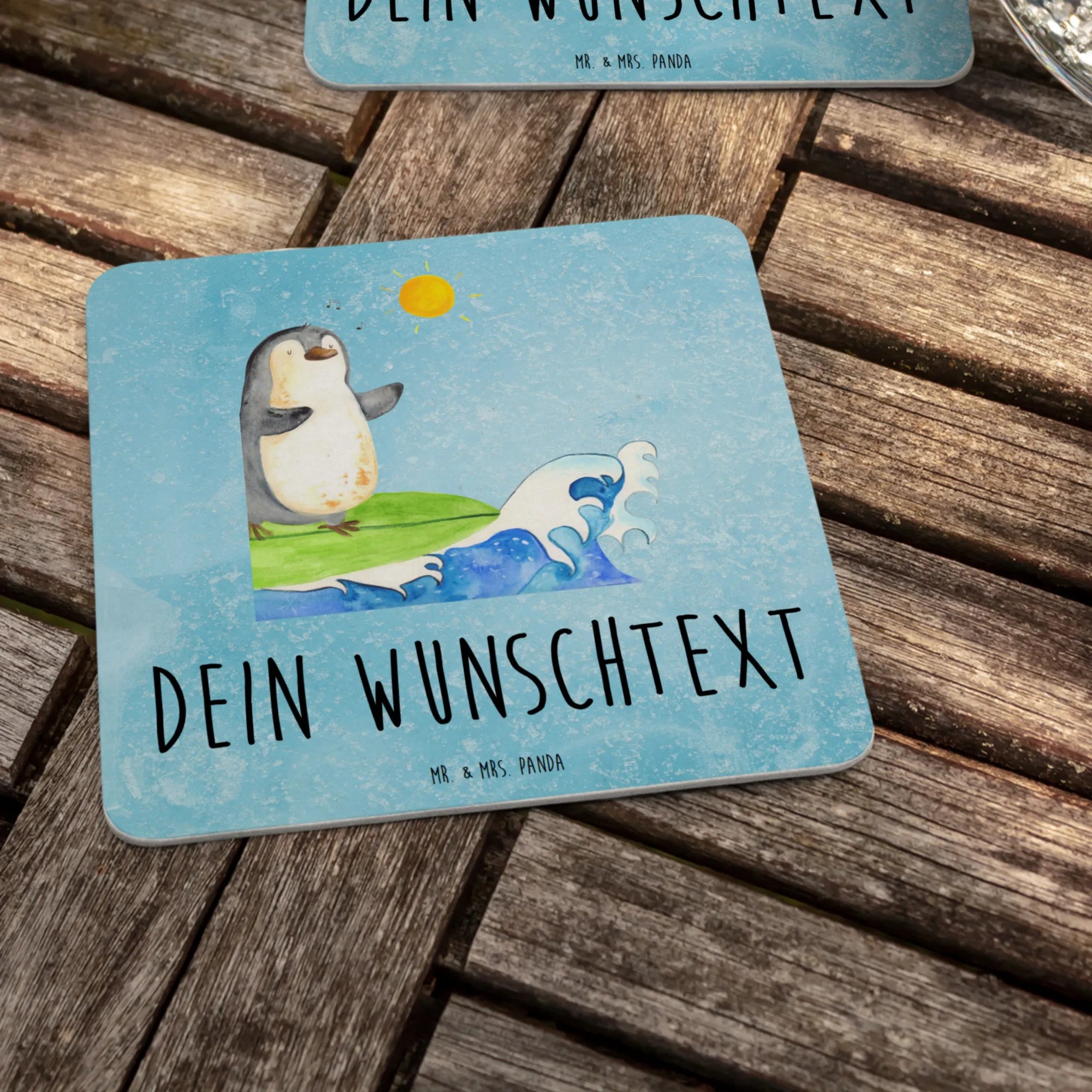 Personalisierter Bierdeckel Pinguin Surfer – Mr. & Mrs. Panda