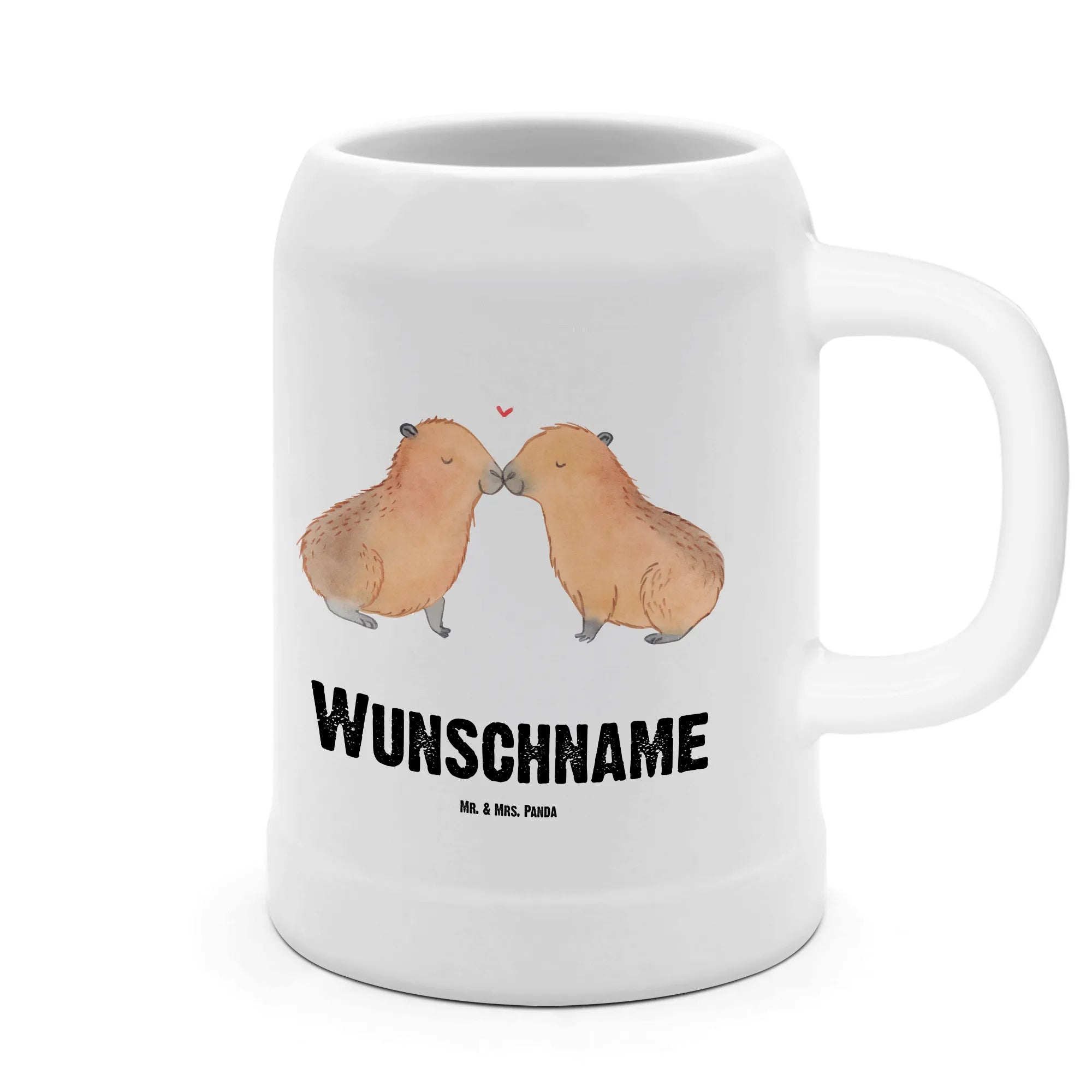 Der personalisierte Bierkrug "Capybara Liebe" aus der Small World Kollektion von Mr. & Mrs. Panda ist das perfekte Geschenk für alle Tierliebhaber und Romantiker. Handgezeichnet und liebevoll gestaltet zeigt dieser massive Keramikbierkrug ein bezauberndes Bild von zwei verliebten Capybaras, die sich sanft berühren. Über ihnen schwebt ein rotes Herz, das ihre innige Zuneigung symbolisiert.