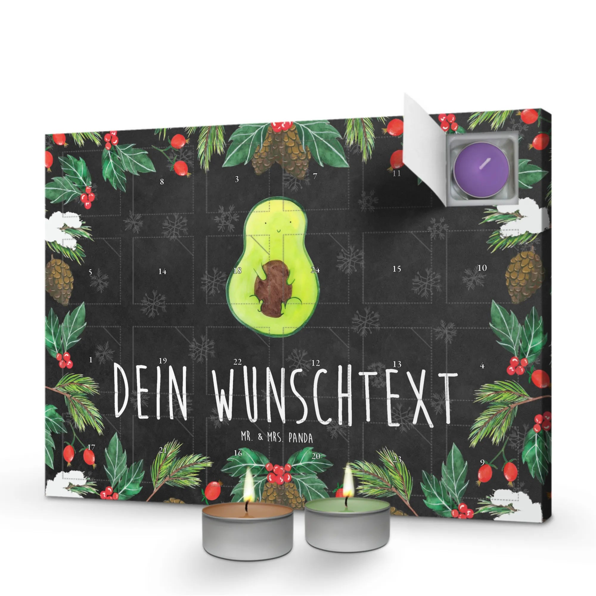 Der personalisierte Duftkerzen Adventskalender mit dem zauberhaften Motiv der Avocado ist das perfekte Geschenk für all jene, die das Besondere im Alltag schätzen. Programmieren Sie etwas Positives in die kalte Jahreszeit!