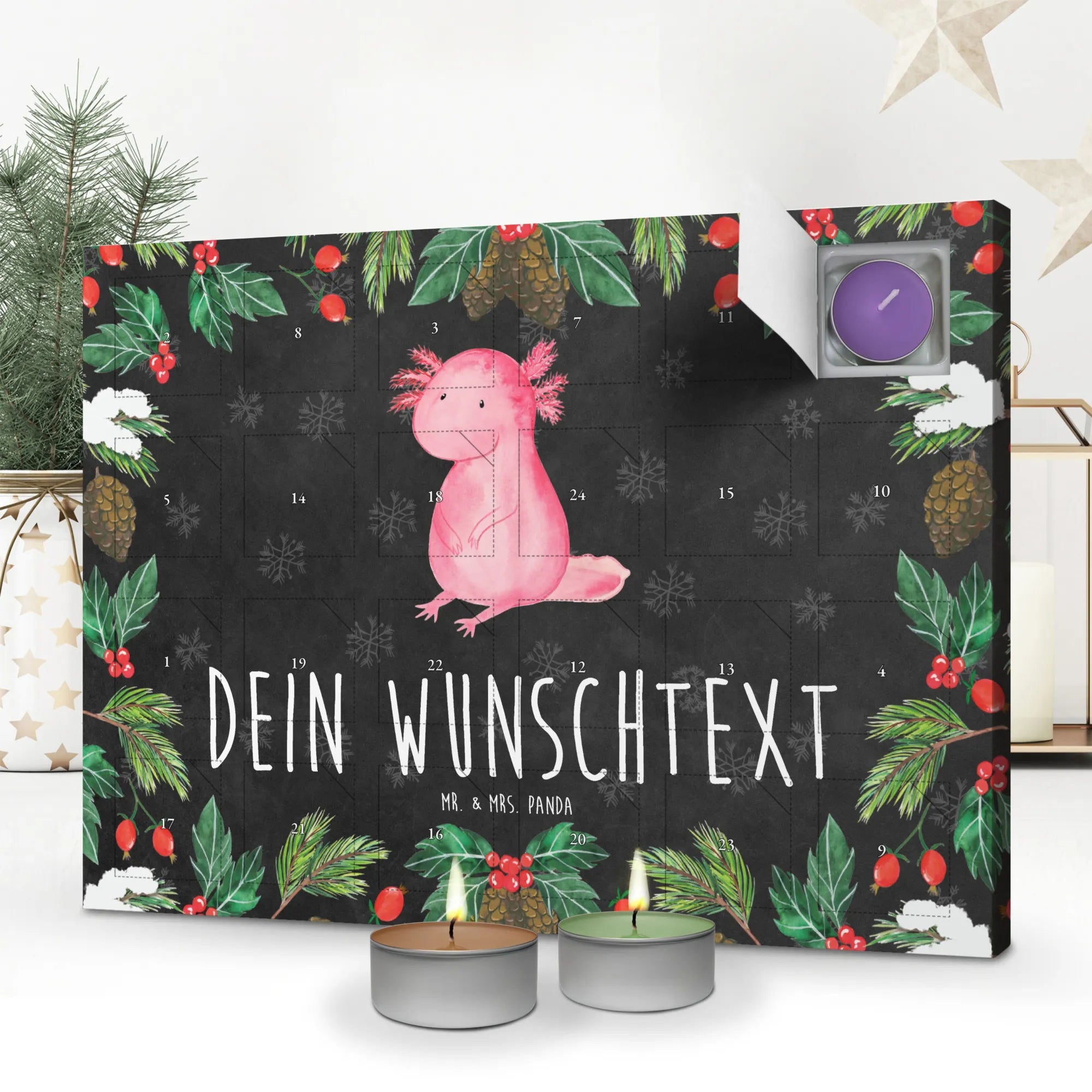 Der personalisierte Duftkerzen Adventskalender mit dem zauberhaften Axolotl-Motiv von Mr. & Mrs. Panda ist das ideale Geschenk für dich und deine Liebsten. Ob für die beste Freundin, die Schwester oder einfach nur als eine kleine Freude für dich selbst – dieser Adventskalender bringt dir in der besinnlichen Zeit des Jahres jeden Tag einen neuen wunderbaren Duft.