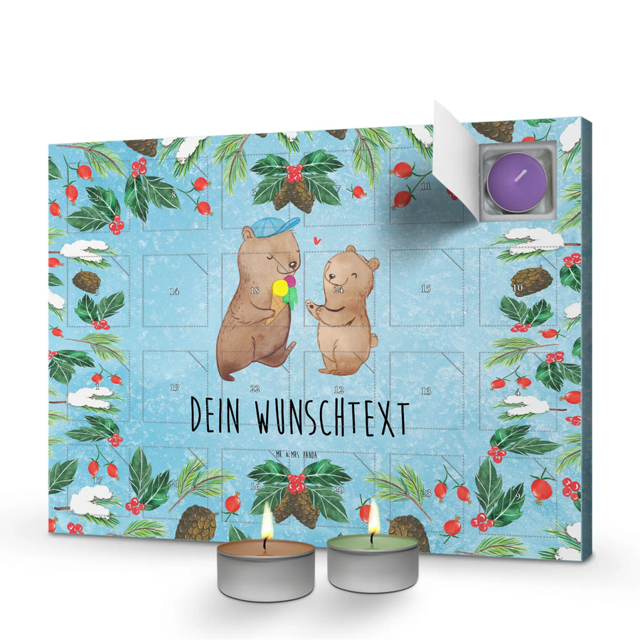 Personalisierter Duftkerzen Adventskalender Bären Papa - Eisblau