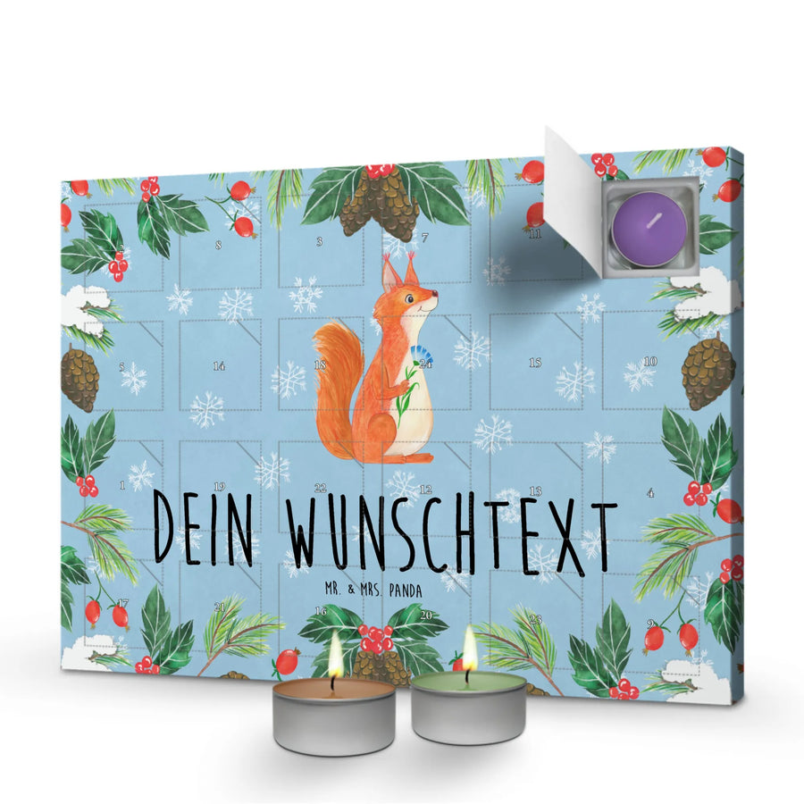 Duftkerzen Adventskalender personalisiert Eichhörnchen Blume - Eisblau