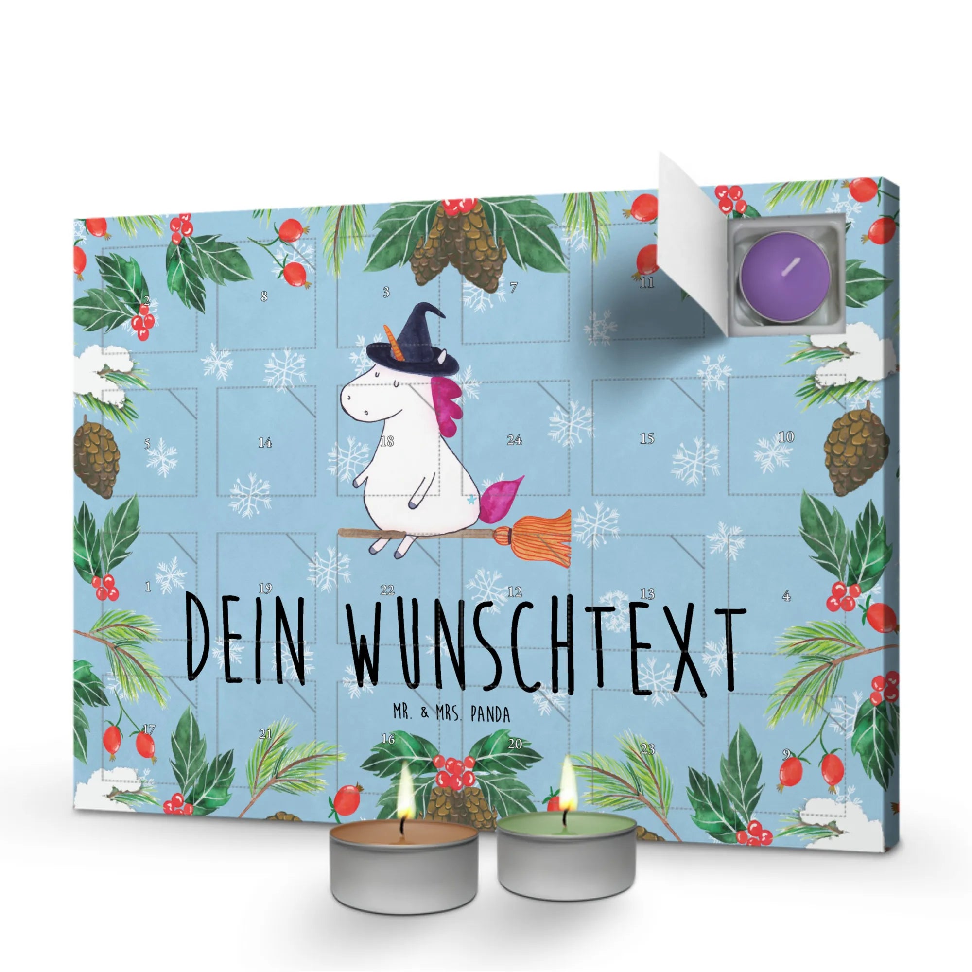 Bist du auf der Suche nach dem perfekten Geschenk, um einer lieben Freundin, deiner Frau oder einer verrückten Hexe eine Freude zu bereiten? Dann ist der personalisierte Duftkerzen Adventskalender von Mr. & Mrs. Panda genau das Richtige für dich! Dieser zauberhafte Adventskalender mit dem süßen Motiv "Einhorn Hexe" ist nicht nur ein Blickfang, sondern auch ein tolles Geschenk für alle, die das Besondere lieben.