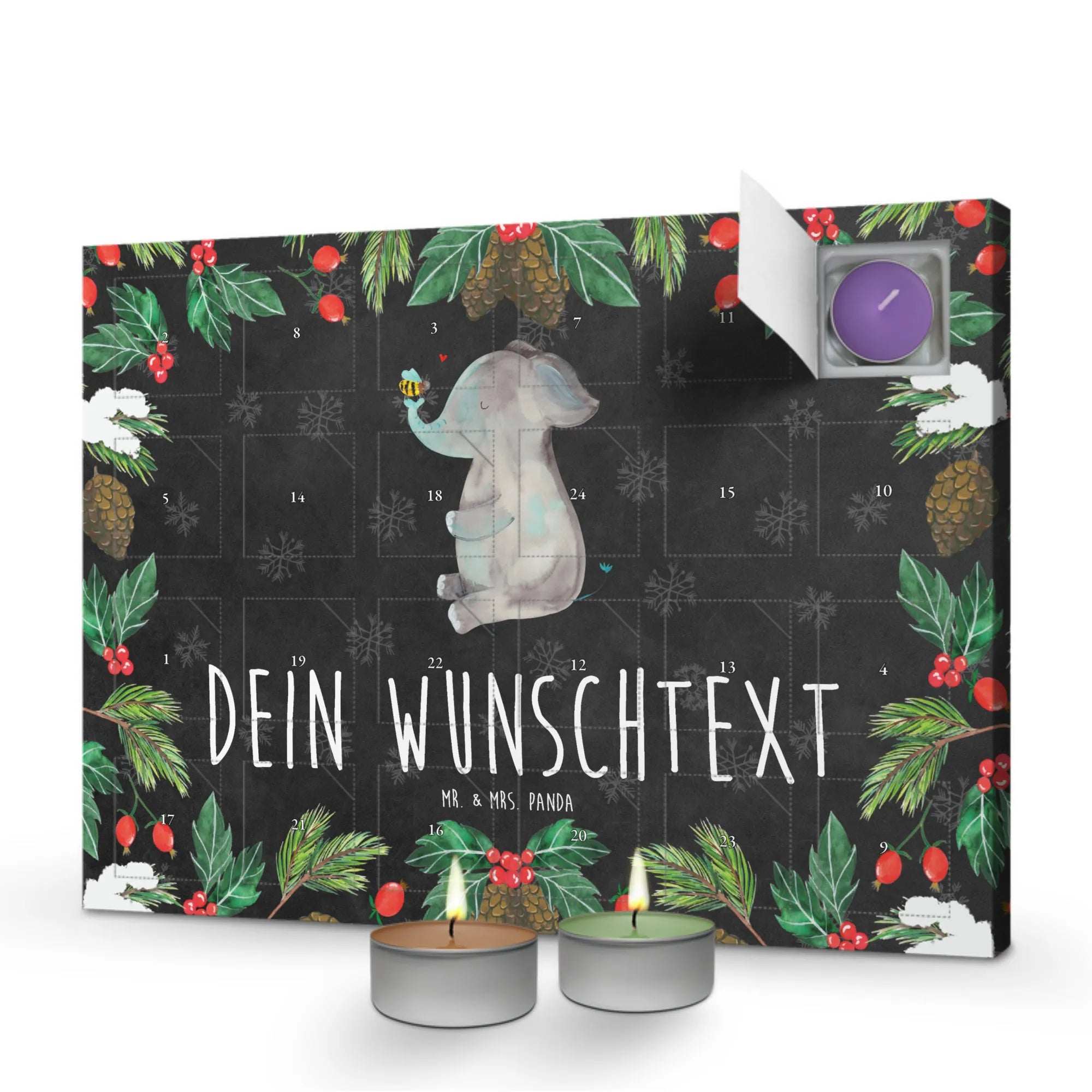 Personalisierter Kerzen Adventskalender Elefant Biene - Eisblau