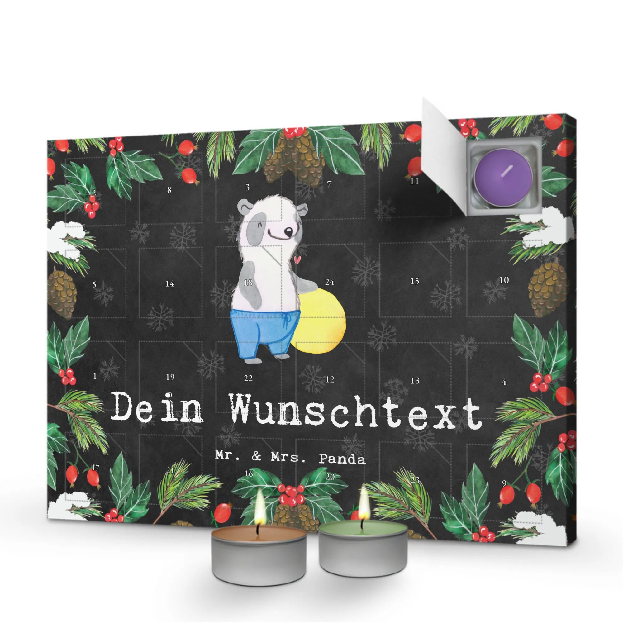 Erlebe Duft und Design: Bestell jetzt den personalisierten Duftkerzen Adventskalender und genieße 24 Tage voller Duftüberraschungen von Mr. & Mrs. Panda.