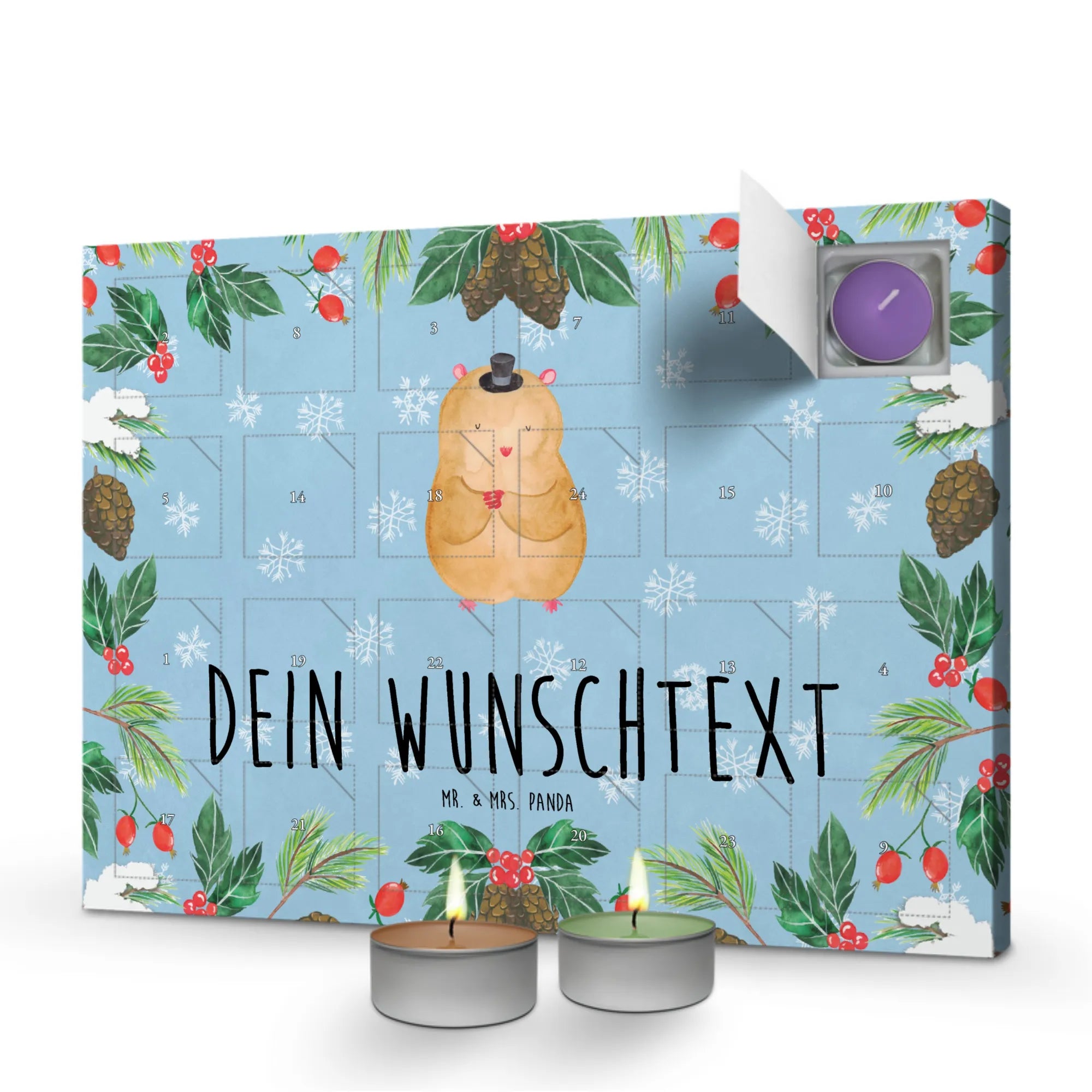 Personalisierter Duftkerzen Adventskalender Hamster Hut – Mr. & Mrs. Panda