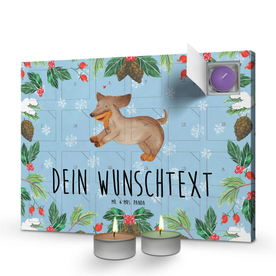 Personalisierter Duftkerzen Adventskalender Hund Dackel - Eisblau