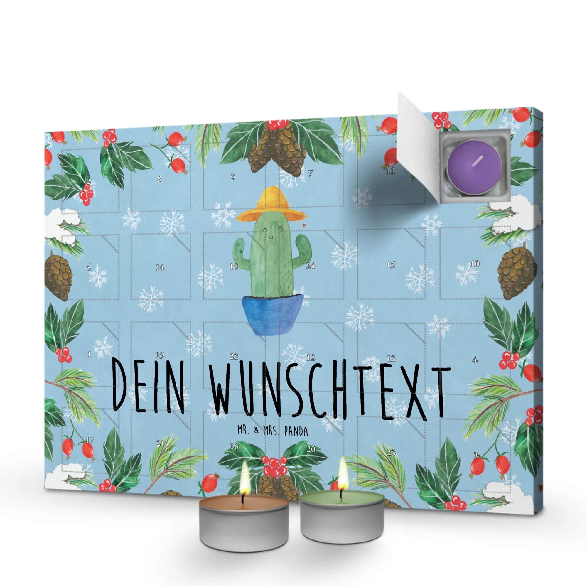 Entdecke den perfekten Adventskalender für alle Reisefreunde und Kaktusliebhaber: Unser personalisierter Duftkerzen Adventskalender mit dem fröhlichen Kaktus Sonnenhut Motiv aus der bezaubernden Kaktus-Kollektion!