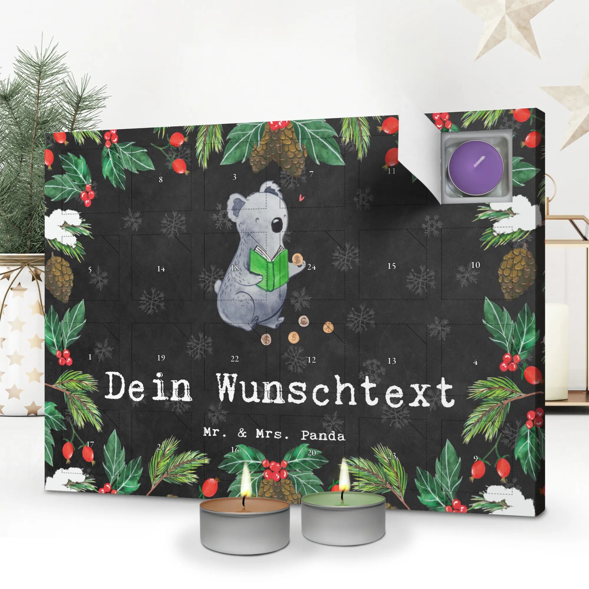 Personalisierter Duftkerzen Adventskalender Koala Münzen sammeln - Kreidetafel