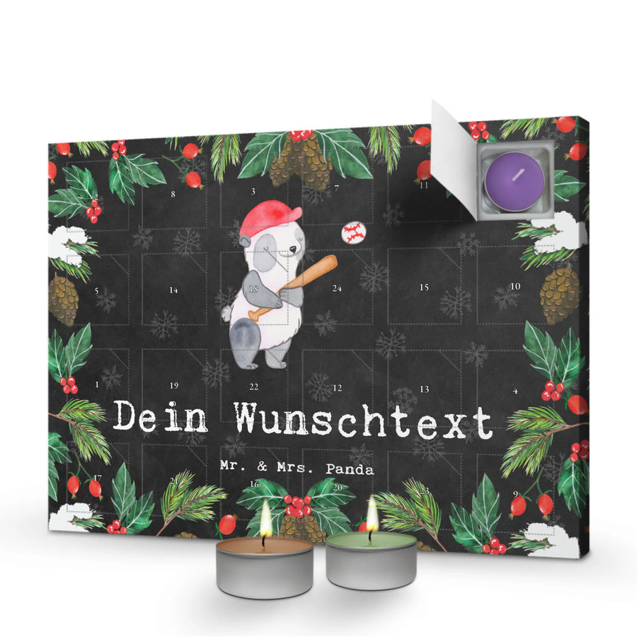 Personalisierter Duftkerzen Adventskalender Panda Baseball spielen - Kreidetafel