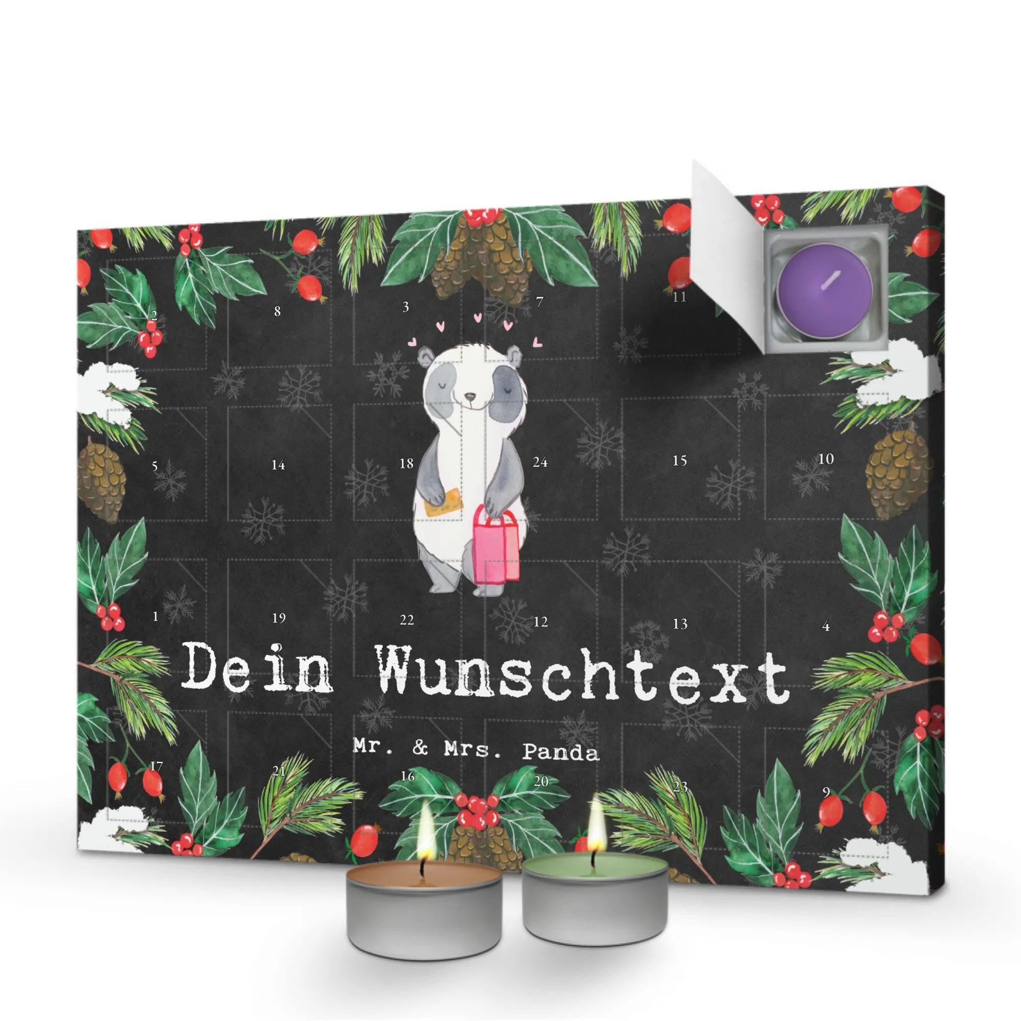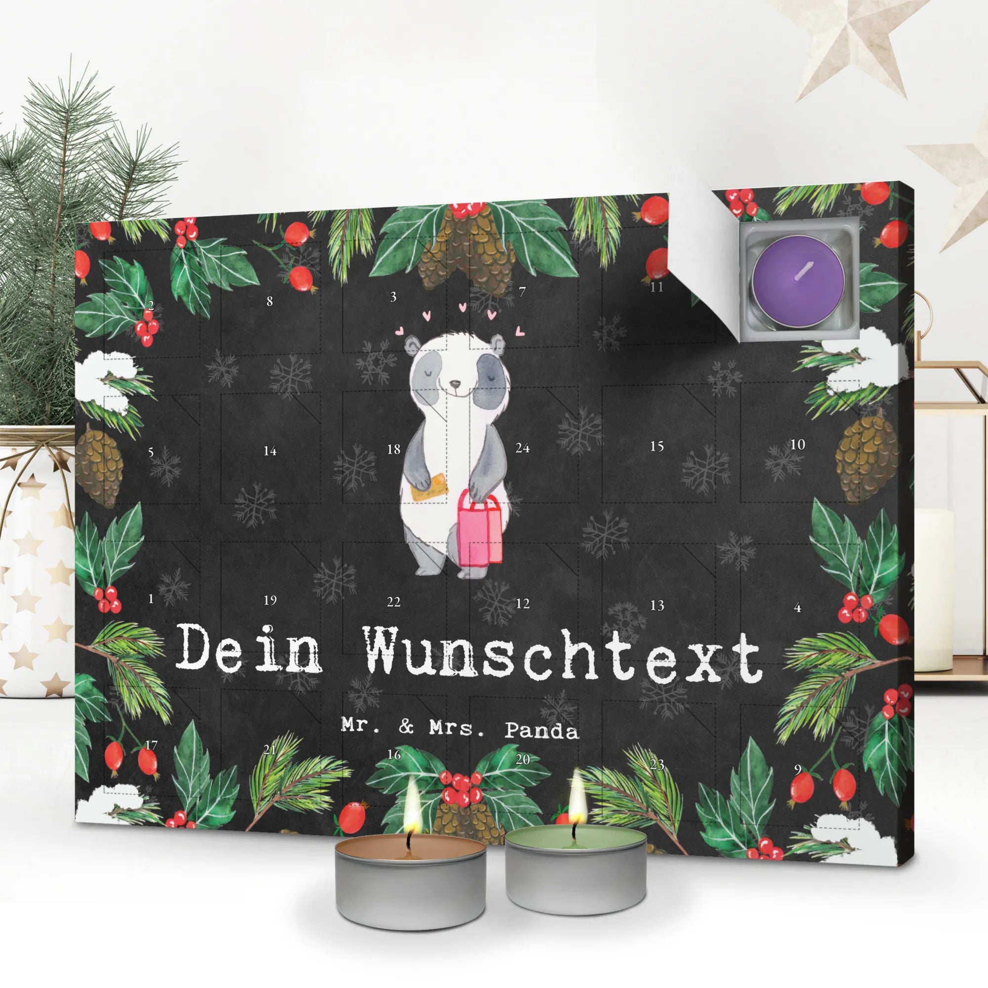 Personalisierter Duftkerzen Adventskalender Panda Shopping - Kreidetafel