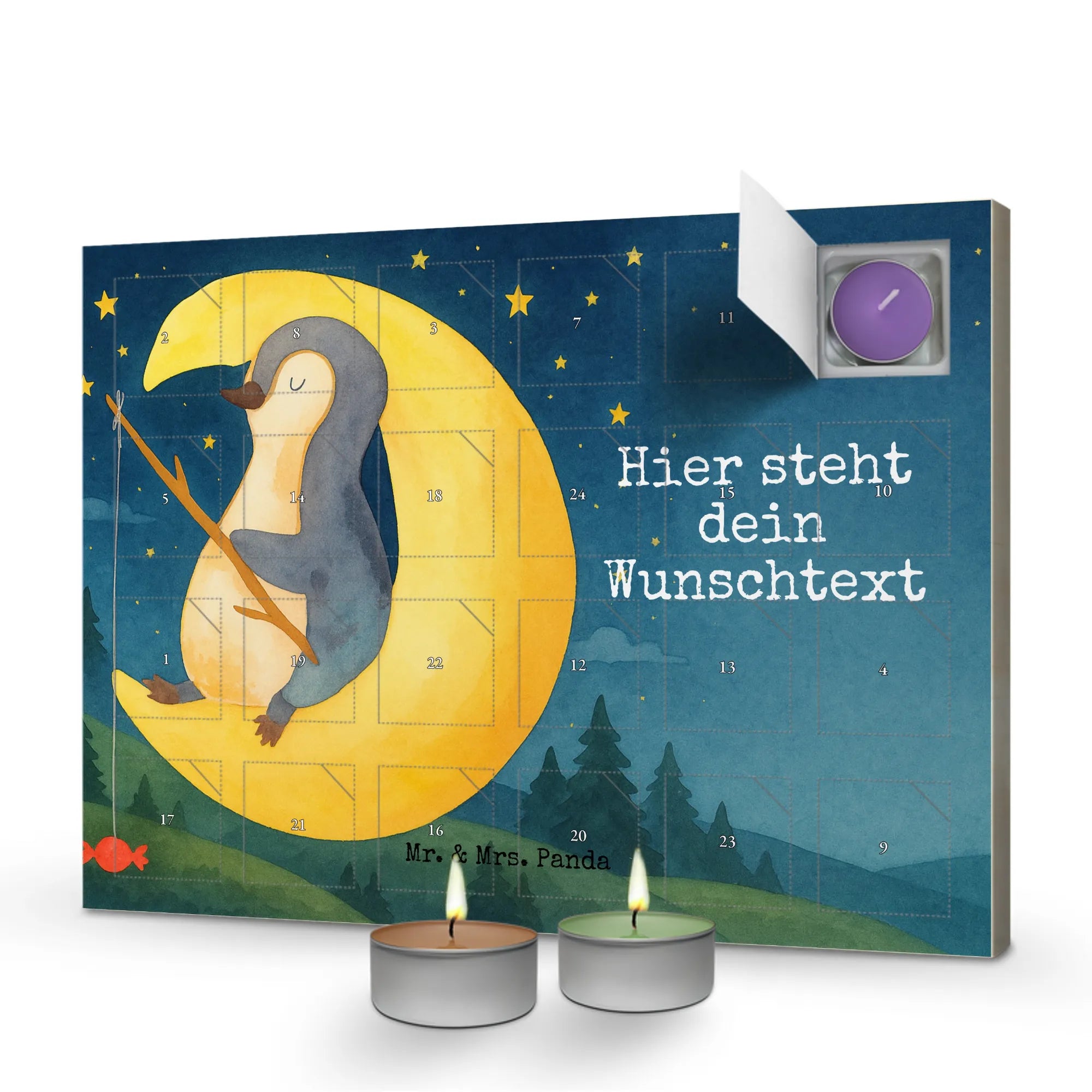 Personalisierter Duftkerzen Adventskalender Pinguin Mond Design