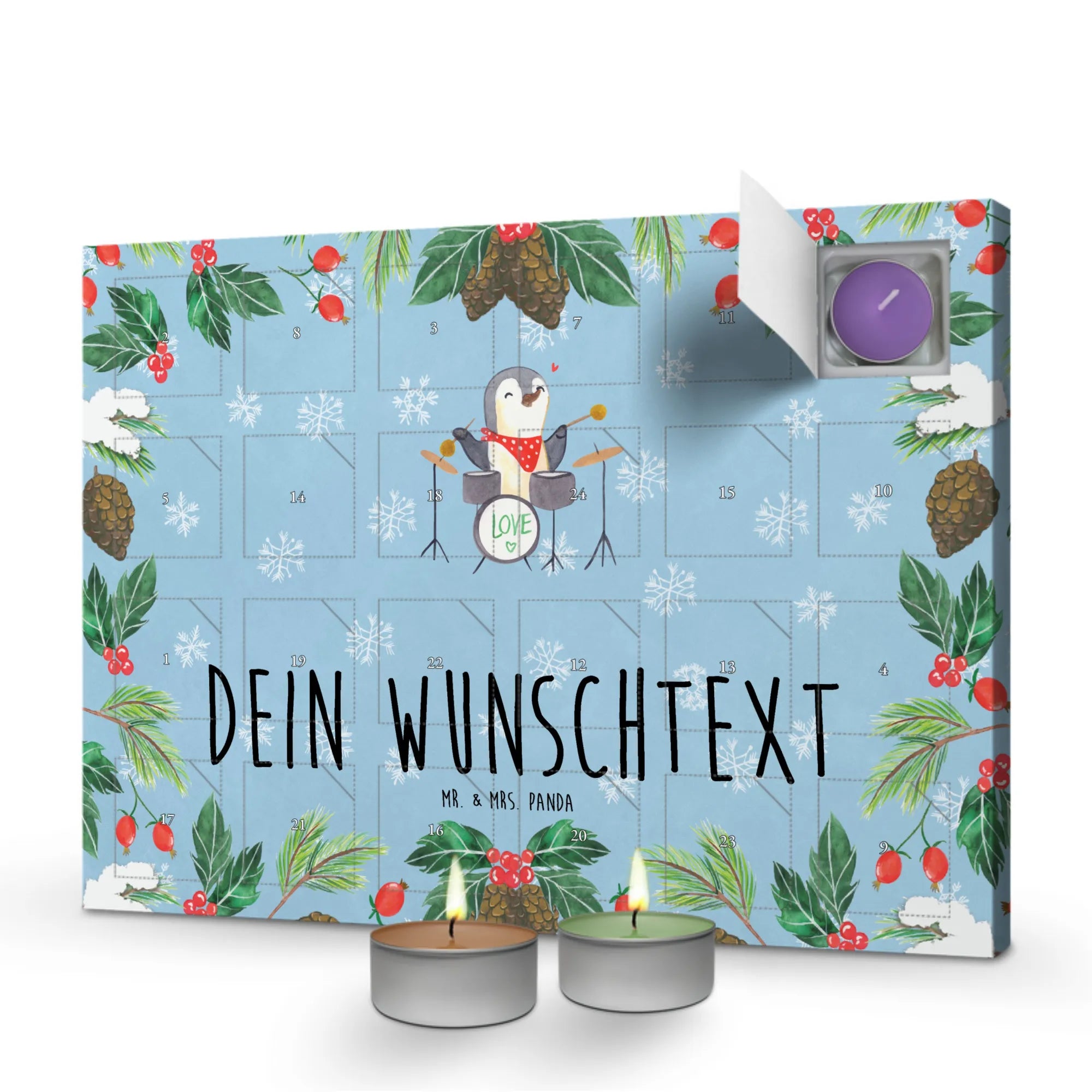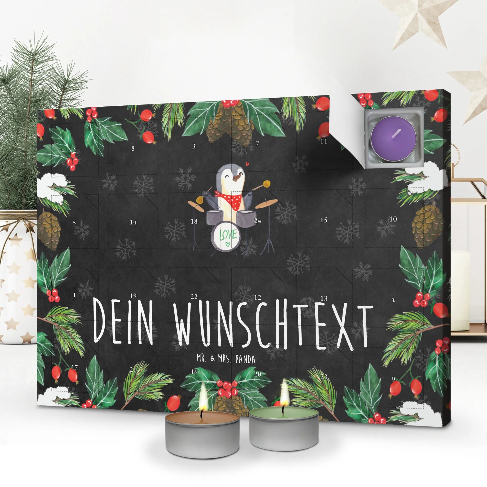 Personalisierter Duftkerzen Adventskalender Pinguin Schlagzeug – Mr. & Mrs. Panda