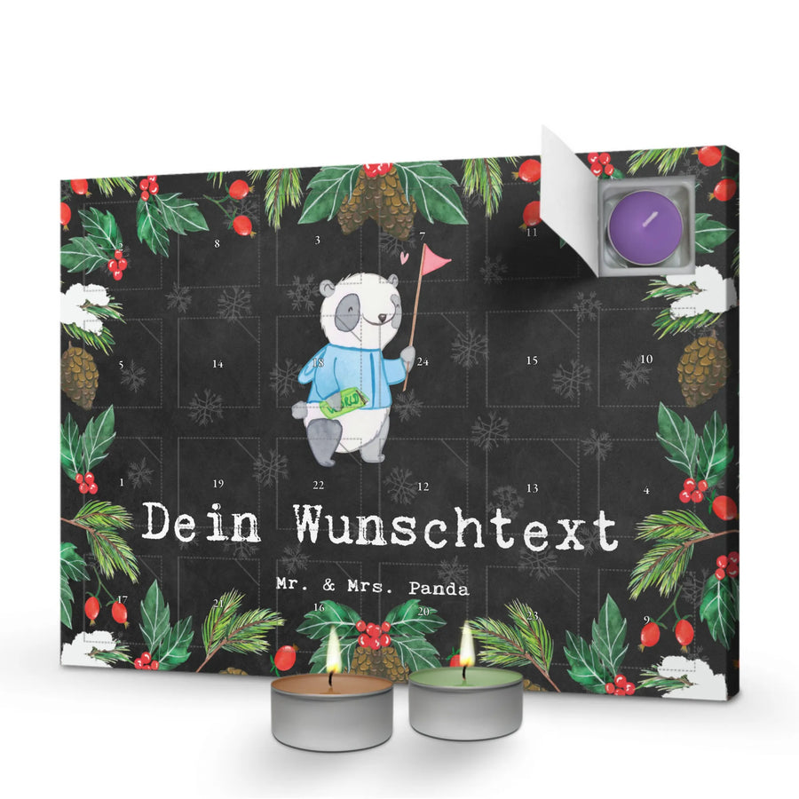 🐼 PERSONALISIERTER ADVENT: 24 Duftkerzen, stabile Kartonqualität und personalisierbarer Fronttext.