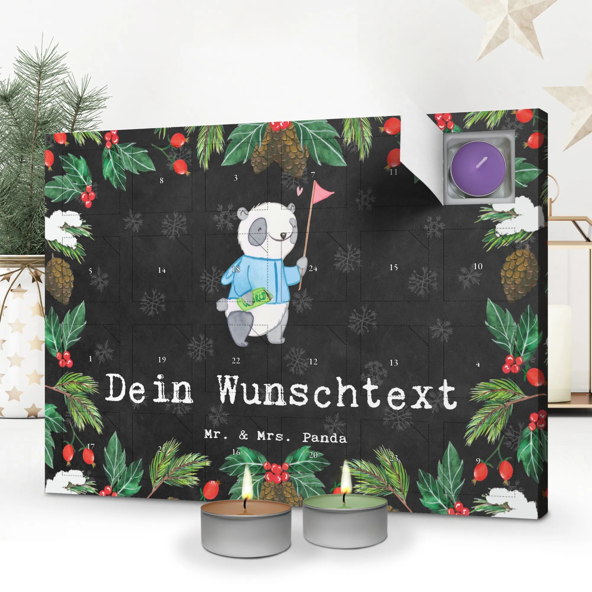 Mach es persönlich: Gestalte deinen personalisierten Duftkerzen Adventskalender und überrasche mit täglichen Duftmomenten – jetzt bei Mr. & Mrs. Panda bestellen!