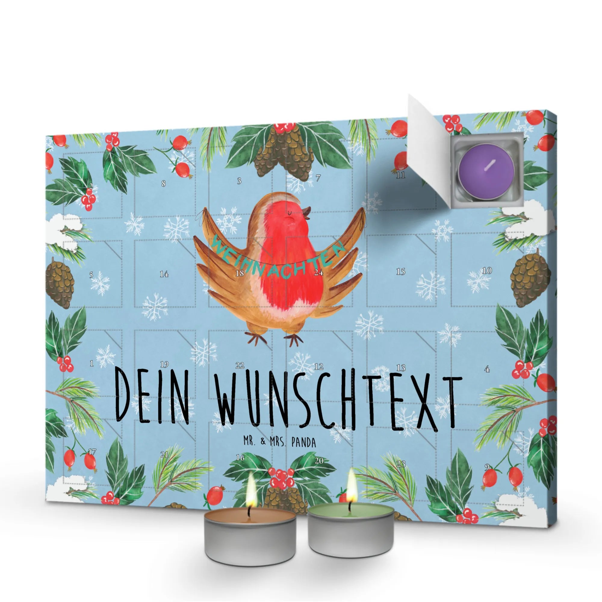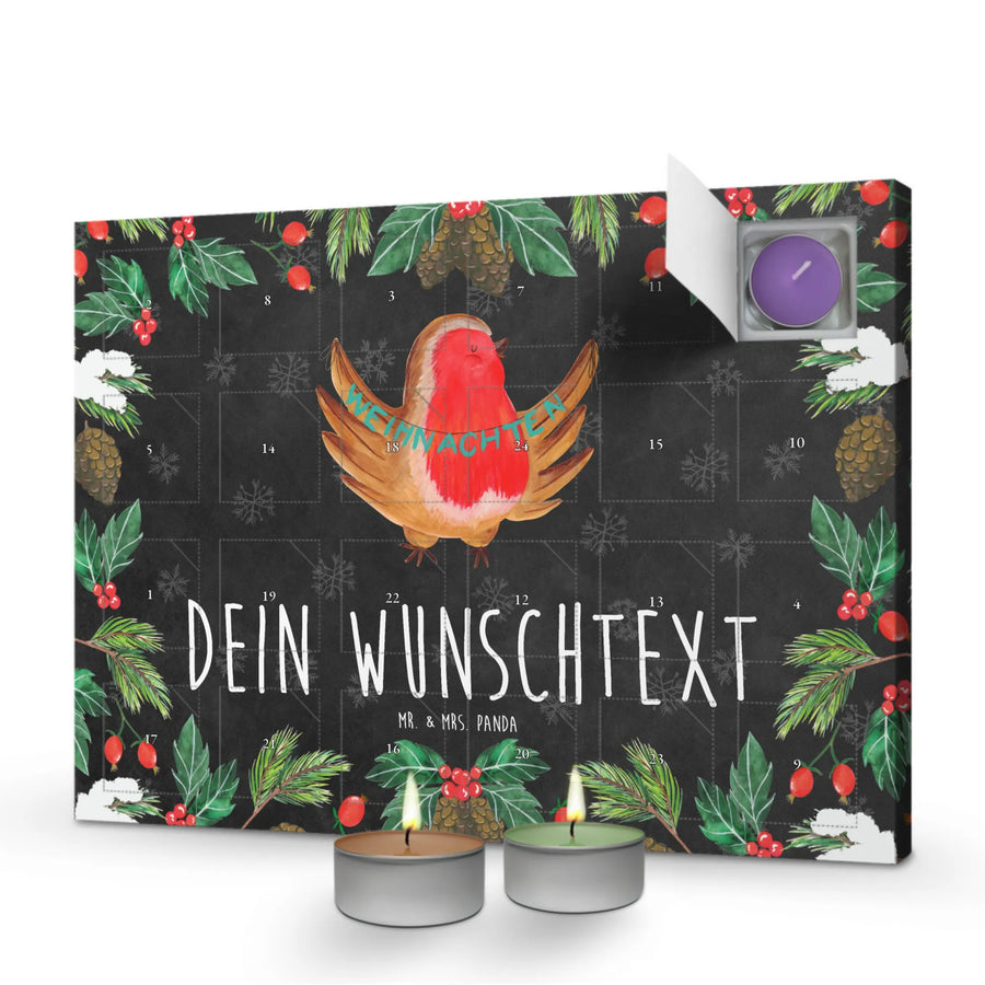 Personalisierter Duftkerzen Adventskalender Rotkehlchen Weihnachten – Mr. & Mrs. Panda