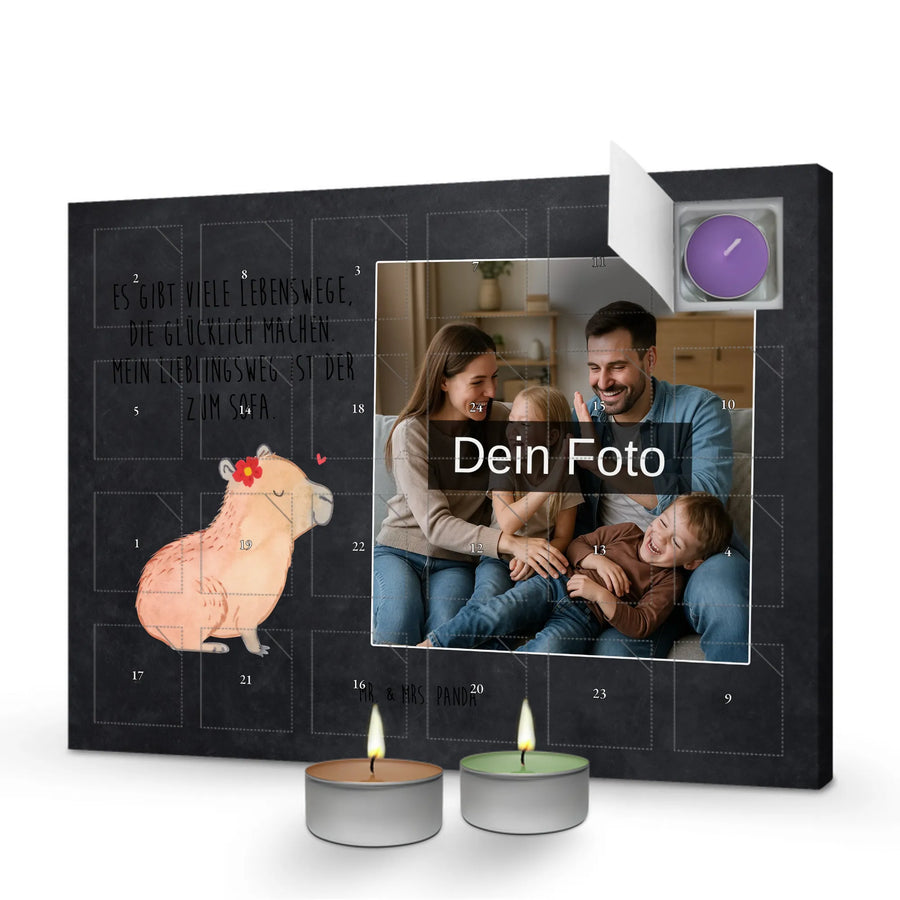 Personalisierter Duftkerzen Foto Adventskalender Capybara Blume - Kreidetafel