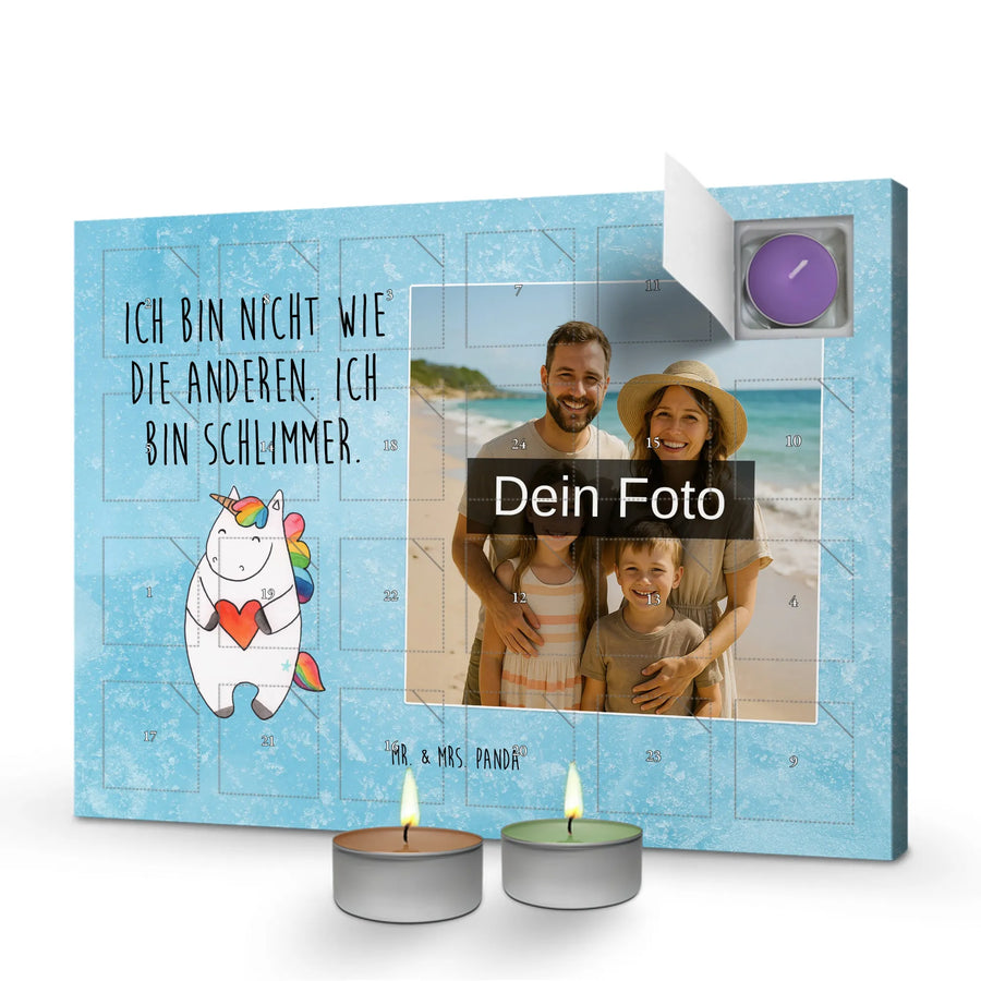 Personalisierter Duftkerzen Foto Adventskalender Einhorn Herz - Eisblau