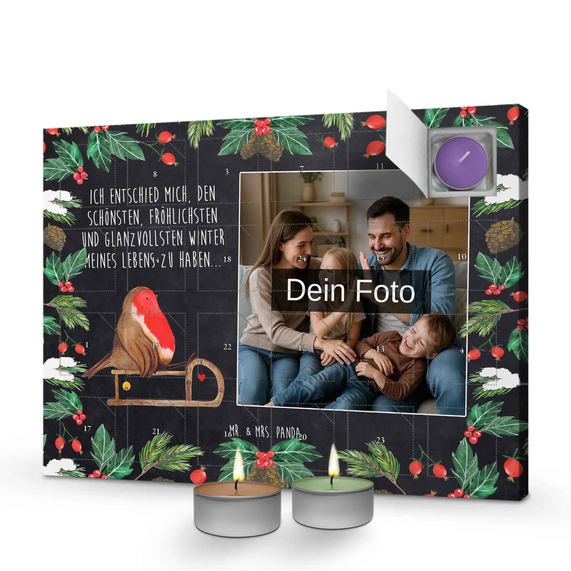 Personalisierter Duftkerzen Foto Adventskalender Rotkehlchen Schlitten