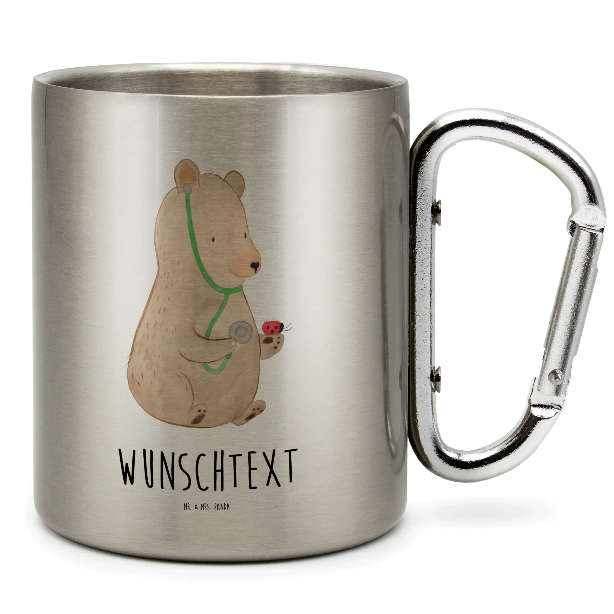 Die personalisierte Edelstahltasse mit dem süßen Motiv "Bär Arzt" von Mr. & Mrs. Panda ist das perfekte Geschenk für alle, die im medizinischen Bereich tätig sind. Ob als Arzt, Ärztin, Doktor oder Professor - dieser Becher vereint Nützlichkeit mit einer liebevollen Note.