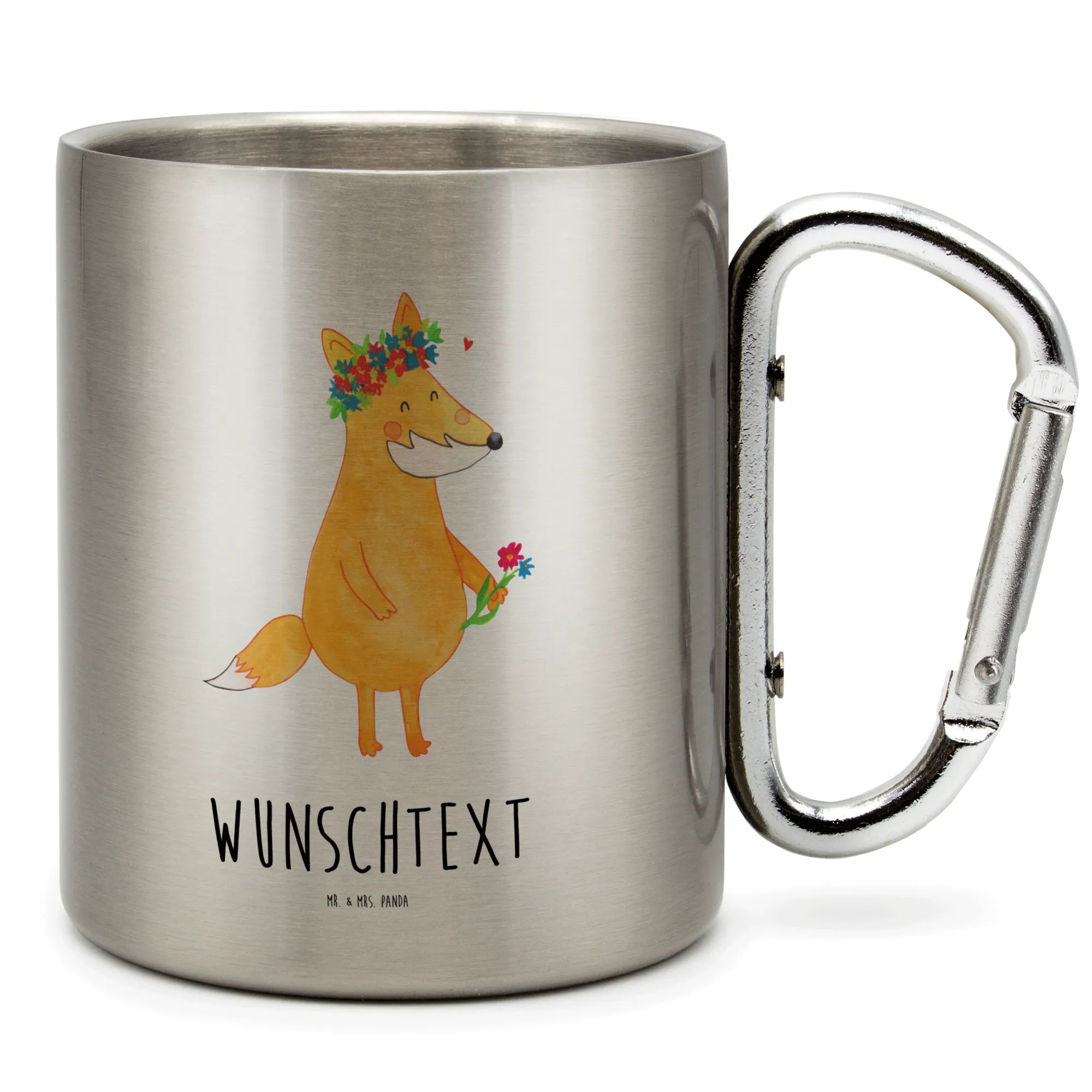 Personalisierter Edelstahlbecher Fuchs Blumenliebe